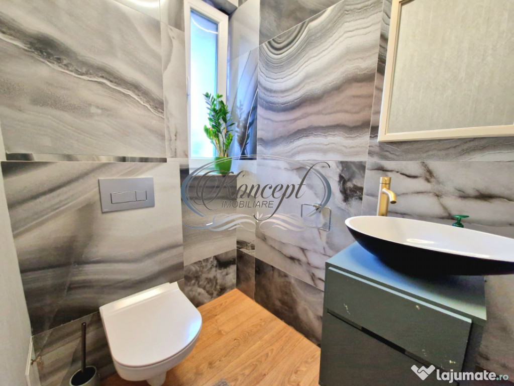 Koncept Imobiliare ofera spre inchiriere o casa individuala situata in cartierul Andrei Muresanu, una dintre cele mai apreciate si exclusiviste zone ale Clujului. Proprietatea este amplasata intr-o zona retrasa si verde, dar cu acces facil catre centrul orasului si principalele artere rutiere, oferind un echilibru ideal intre liniste si conectivitate urbana. Casa este dispusa pe doua niveluri si beneficiaza de o suprafata utila de 150 mp, amplasata pe un teren de 300 mp. Compartimentarea eficienta cuprinde 4 camere, 3 bai, bucatarie, hol, un birou separat, doua balcoane si o terasa generoasa de 100 mp. Spatiul este completat de un garaj si o curte proprie pavata, ideala pentru utilizare zilnica. Finisajele sunt de lux, iar imobilul este complet mobilat, oferind un ambient elegant si functional. Incalzirea se realizeaza prin centrala termica, iar orientarea multipla nord-sud asigura luminozitate si confort pe tot parcursul zilei. Proprietatea este pet friendly, o optiune rara si cautata in zona Andrei Muresanu. Casa este recomandata pentru o familie care doreste un camin stabil si bine localizat. Nu permite recompartimentari, dar actuala dispunere ofera un grad ridicat de flexibilitate in utilizare. Pentru informatii complete, programarea unei vizionari sau pentru a afla oferta noastra completa va stam la dispozitie telefonic, prin e-mail sau la sediul agentiei noastre, pe str. Aviator Badescu, nr. 19, Cluj-Napoca.Id intern: P20941