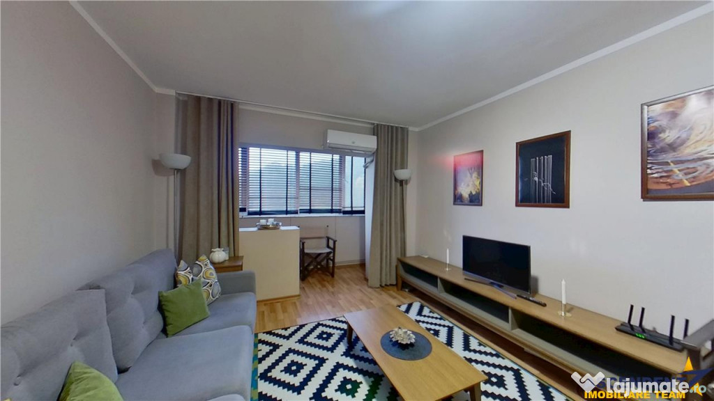 Oferta, asa cum se prezinta in fotografii, mobilata si echipata cu electrocasnice, este pregatita sa devina ,,acasaquot; pentru viitorii proprietari.Veti beneficia de o infrastructura foarte bine conectata la ritmul orasului:mijloace de transport in comun, parcuri si zone verzi, institutii bancare, scoli, gradinite.
