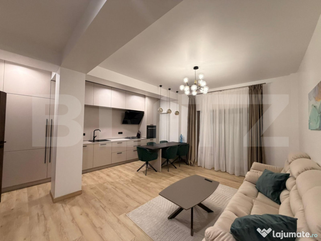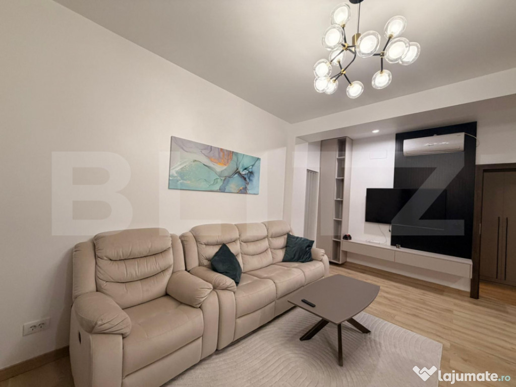 Blitz propune spre inchiriere un apartament spațios și luminos situat în cartierul Brazdă, în apropiere de restaurantul Roca, într-o zonă liniștită și foarte accesibilă. Apartamentul se află la etajul 1 al unui bloc nou, construcție 2024, cu doar 3 etaje, și beneficiază de loc de parcare privat.Cu o suprafață utilă de 80 mp, locuința este complet mobilată și utilată modern și este compartimentată astfel:
