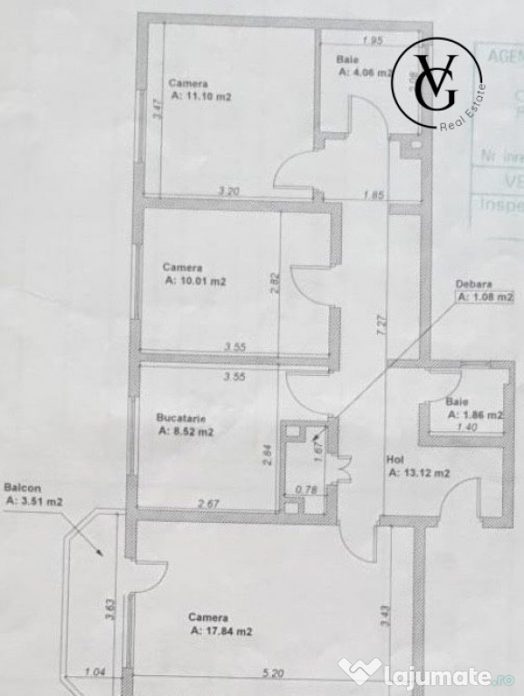 • Tipul apartamentului: 3 camere, tip: decomandat.