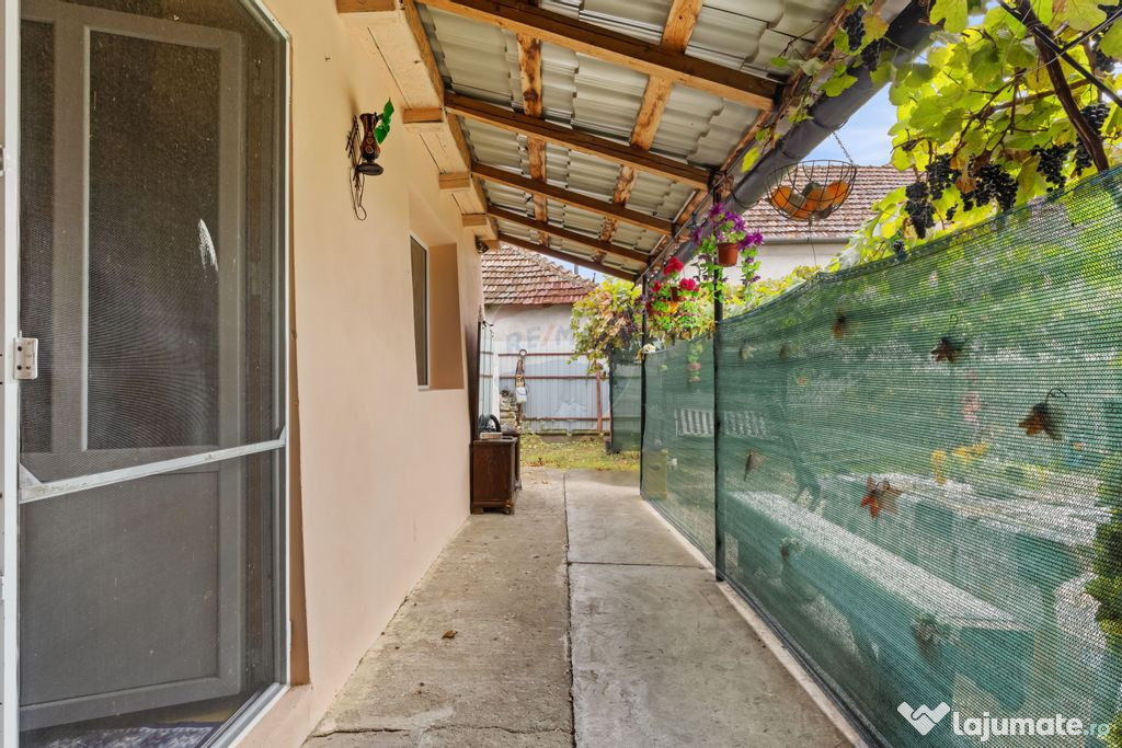 RE/MAX Dynamic va propune in exclusivitate si FARA COMISION la cumparare o casa solida, situata pe un teren in suprafata de 1222 mp, in satul Nadab , Ors. Chisineu-Cris, judetul Arad.Casa este din vaiuga si boltari si este compartimentata dupa cum urmeaza: hol acces , 3 camere (2 dormitoare la strada), bucatarie , baie , doua beciuri, terasa acoperita.