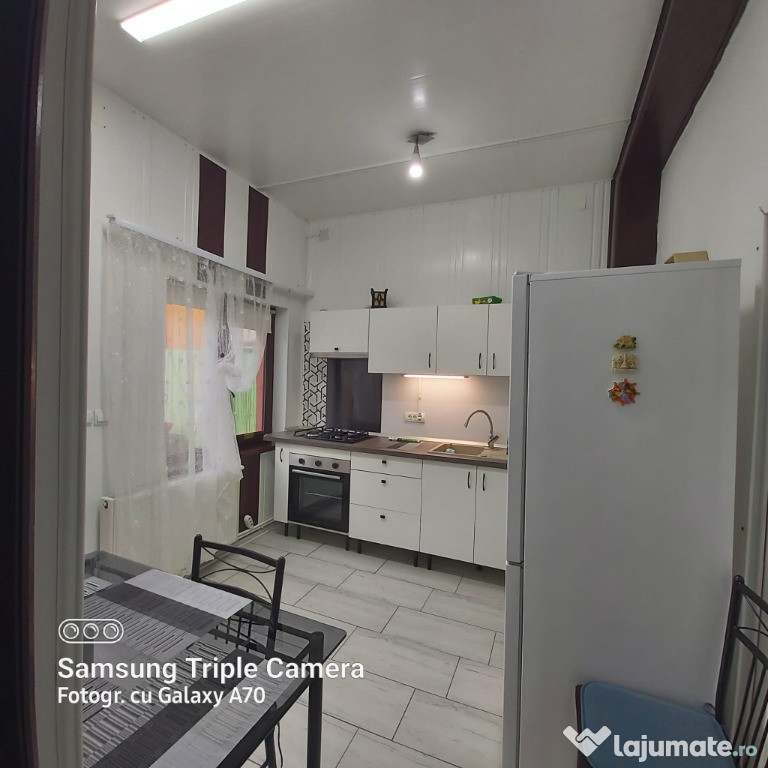 Proprietar, ofer spre inchiriere un apartament cu 2 camere, la casă (parter), in zona Gării.Apartamentul este complet mobilat şi utilat cu suprafata de 80mp: abonament cablu internet si TV, frigider, plita pe gaz + cuptor electric, mașină de spălat, centrală proprie, tâmplărie termopan.