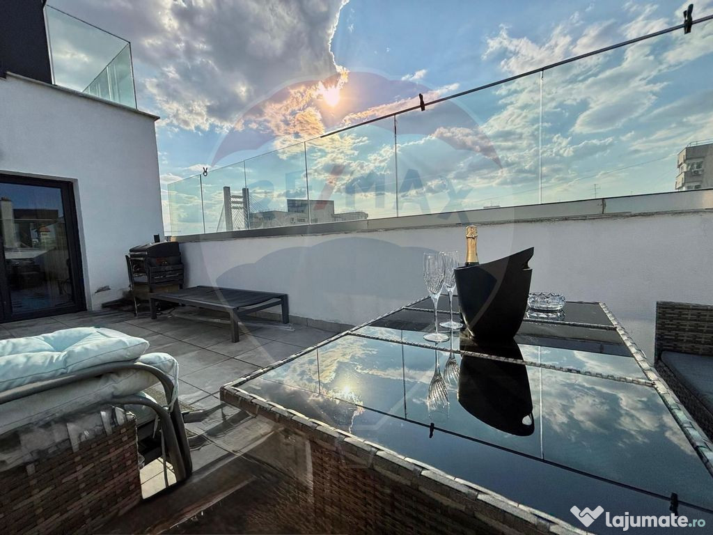 Iti prezint spre inchiriere un apartament modern cu 3 camere, tip penthouse cu terasa si vedere panoramica, situat pe strada Petru Rares nr. 5-9, la doar cateva minute de Metrou Basarab, Bulevardul Nicolae Titulescu si Piata Victoriei.Apartamentul este complet mobilat si utilat cu electrocasnice premium, fiind pregatit pentru mutare imediata.