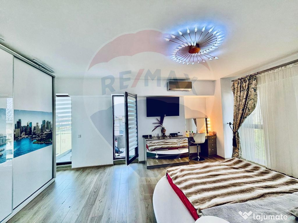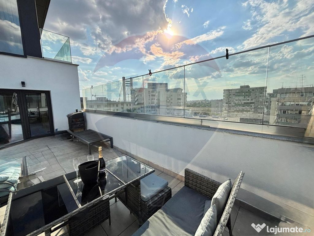 Piesa de rezistenta este terasa spatioasa, amenajata ca un loc primitor, unde te poti relaxa dupa o zi plina sau poti organiza seri cu prietenii si familia, beneficiind de o priveliste panoramica asupra orasului.