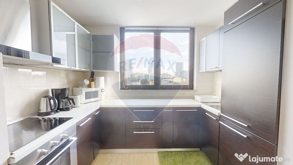 Va propun spre inchiriere un apartament cu 3 camere situat in complexul North Area Lake View pe str. Zagazului, zona Aviatiei, la 3 minute de Parcul Herastrau.Proprietatea se afla la etajul 4 din 9 si are o suprafata de 90 mp, cu 3 camere, 2 bai si 2 balcoane.