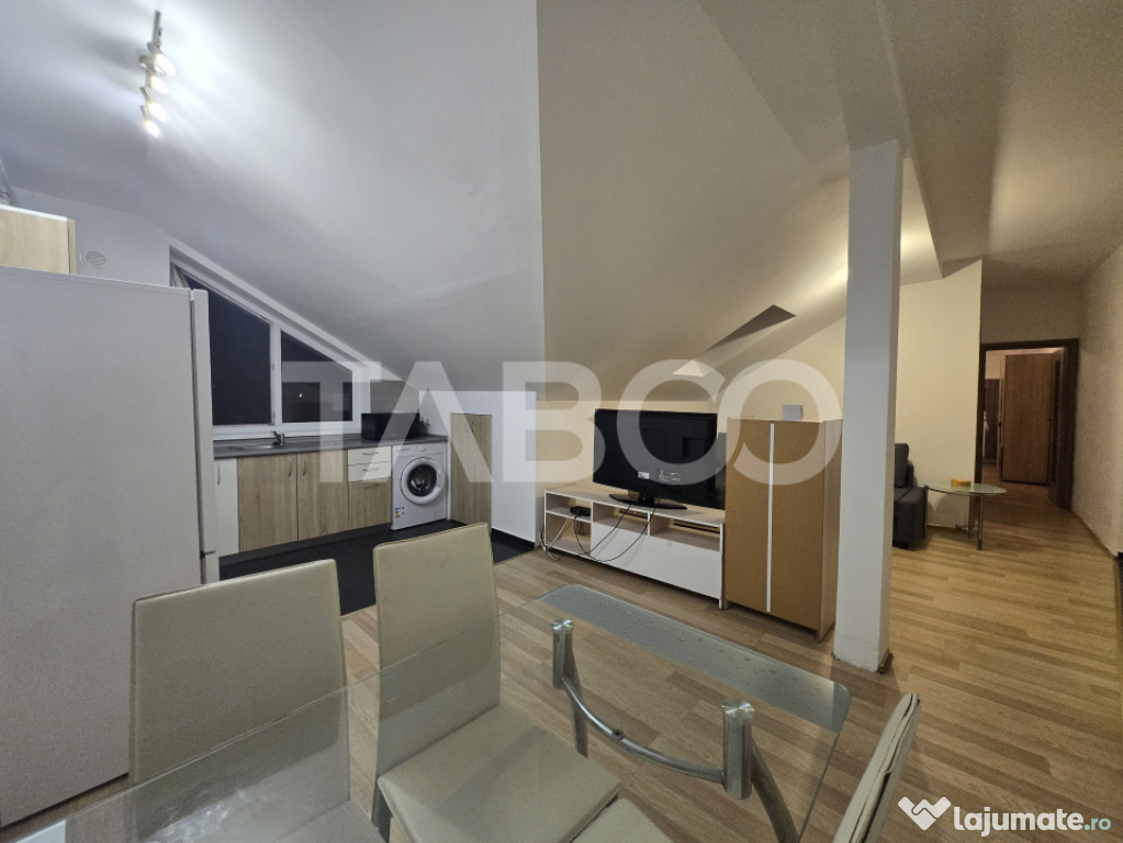 Apartament 3 camere de vanzare, decomandat, 64 mp, zona Turnisor, Sibiu.Situat la mansarda unui bloc construit recent, proiectat inca de la inceput pentru a gazdui vieti frumoase sub acoperis, acest apartament ofera intimitate si caldura.