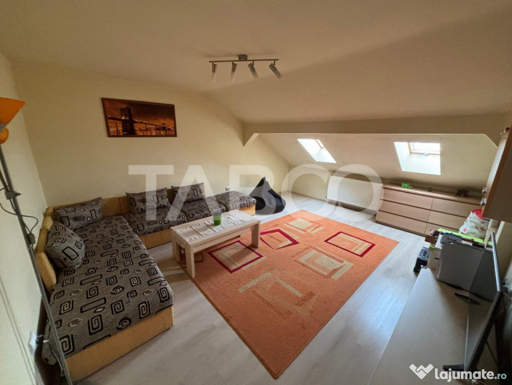TABOO Imobiliare propune un apartament de vanzare cu 3 camere, decomandat, situat in localitatea Sibiu, zona Strand, aflat la mansarda intr -un imobil tip bloc cu regim de inaltime pe Parter + 4 Etaje; anul constructiei 2010, structura caramida. Suprafata utila de 92 mp.