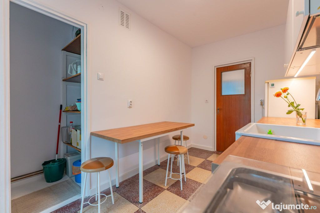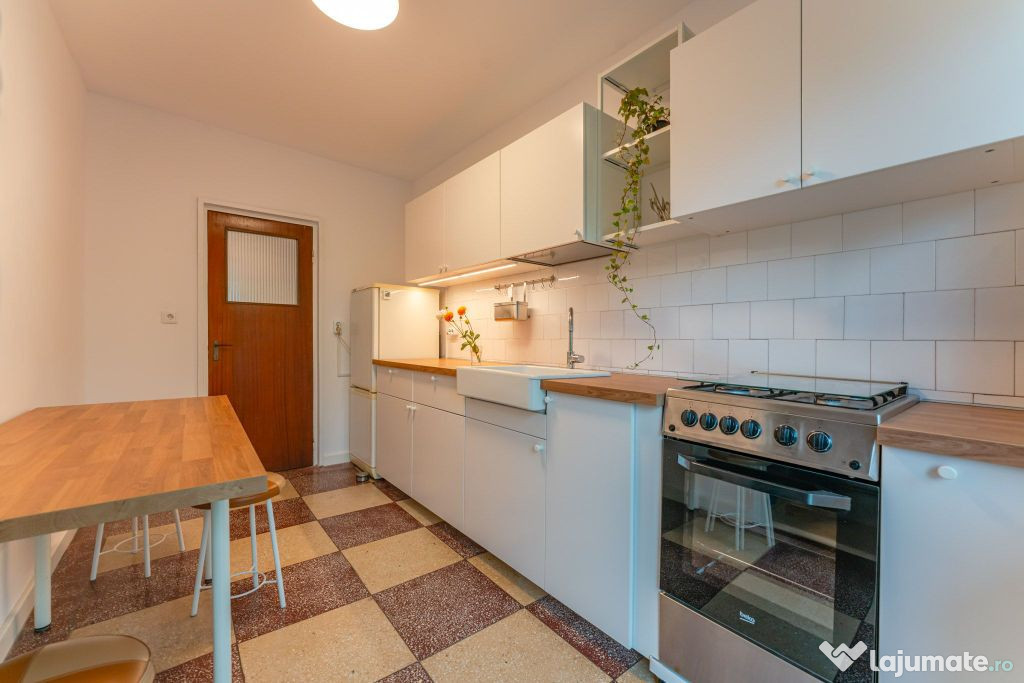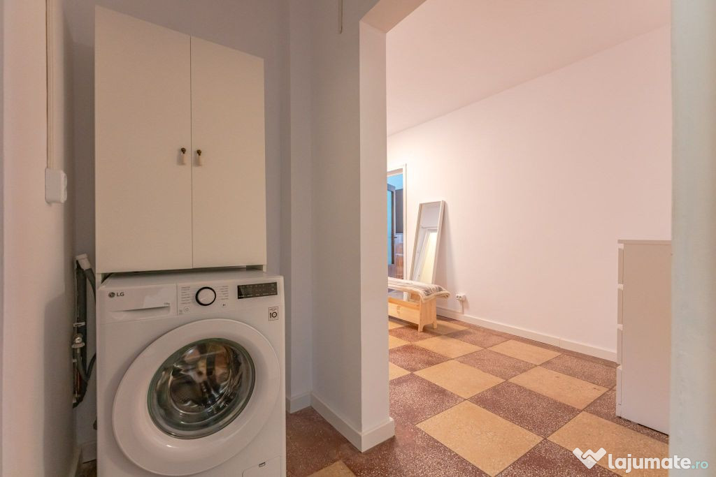 Locuința se închiriază mobilată și utilată, conform fotografiilor de prezentare. Echipamentele includ frigider, aragaz cu cuptor pe gaz și mașină de spălat rufe. Suplimentar, bucătăria va fi dotată cu un cuptor cu microunde. Proprietarul este deschis la discutarea unor cerințe suplimentare de mobilier, precum adăugarea unui dressing.