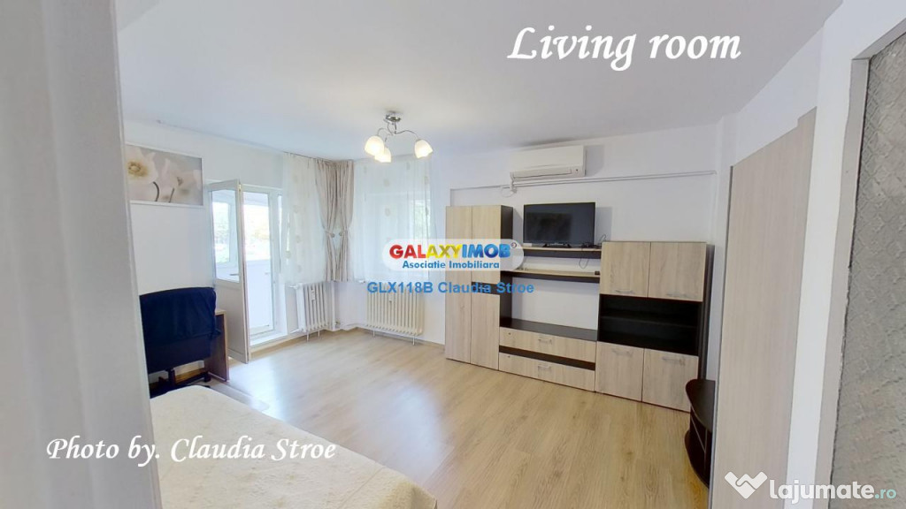 Treci mai departe si intri in LIVING - lumina naturala patrunde prin ferestre, iar canapeaua extensibila te invita sa te asezi. Biroul si scaunul te asteapta daca ai nevoie de un spatiu de lucru, iar TV-ul montat pe mobilierul media completeaza zona de relaxare. Aerul conditionat asigura confortul pe timp de vara, iar dulapul tip dressing cu usi glisante pastreaza totul ordonat. Din living, BALCONUL in forma de L se deschide ca un mic refugiu, ideal pentru cafeaua de dimineata sau pentru a usca hainele in aer liber.
