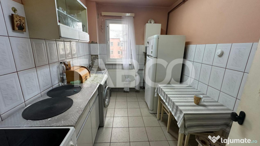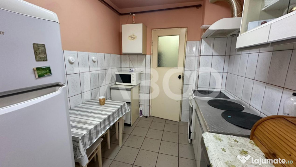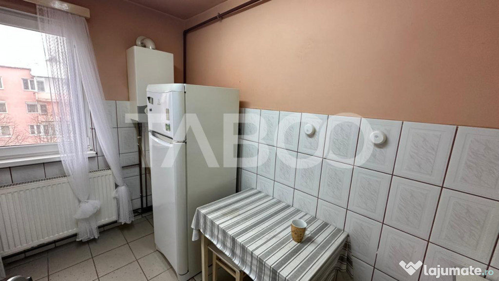 TABOO Imobiliare propune un apartament de vanzare cu 2 camere, semidecomandat, situat in localitatea Sibiu, zona Mihai Viteazul, aflat la etajul 4 intr -un imobil tip bloc cu regim de inaltime pe Parter + 4 Etaje; anul constructiei 1980, structura caramida. Suprafata utila de 40 mp + balcon de 3 mp.