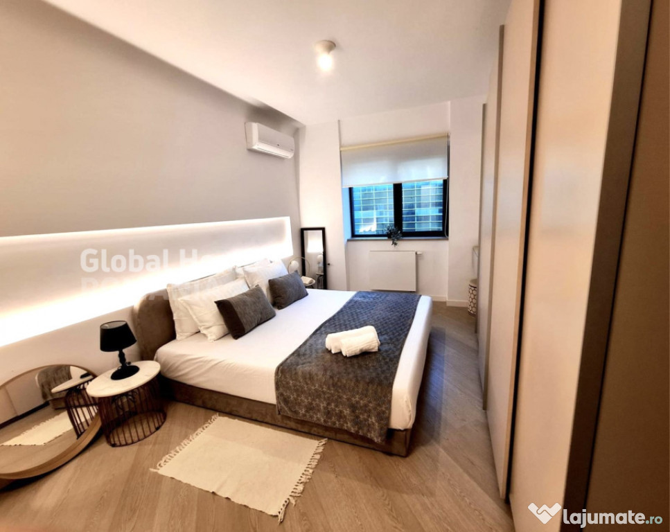 Vă prezint spre închiriere un apartament de 3 camere, situat într-unul dintre cele mai apreciate ansambluri rezidențiale din nordul Capitalei – Cortina North, un proiect ce îmbină eleganța, confortul și funcționalitatea urbană modernă.Apartamentul impresionează printr-un design interior contemporan, realizat cu atenție la detalii, finisaje premium și un concept unitar, menit să ofere un stil de viață rafinat. Zona de living este spațioasă, luminoasă și primitoare, mobilată cu piese moderne, în nuanțe calde și naturale, completată de un iluminat ambiental discret, ce creează o atmosferă relaxantă.
