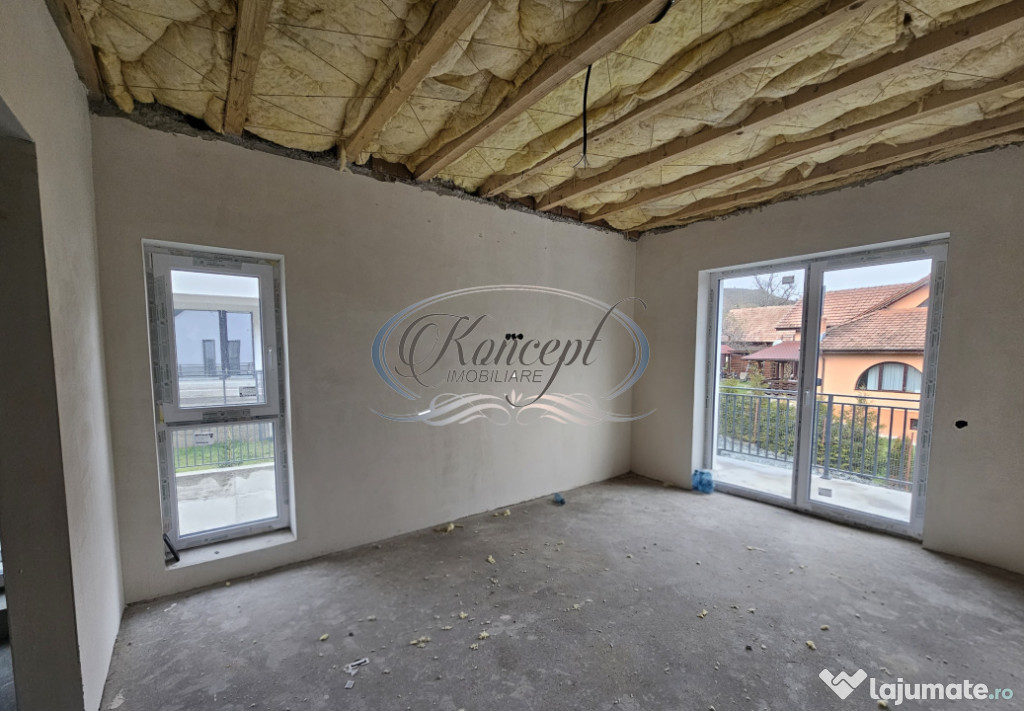Koncept Imobiliare va ofera spre vanzare o casa individuala situata in satul Tauti, comuna Floresti, intr-o zona linistita, verde si retrasa de la agitatia cotidiana, cu acces rapid catre Floresti si catre Cluj-Napoca. Amplasata intr-un ansamblu intim, format din doar 4 unitati locative, proprietatea beneficiaza de o orientare nord-est si de o priveliste placuta spre padure, oferind un plus de intimitate si confort. Casa este noua, finalizata in anul 2025, are regim de inaltime P+1+pod si o suprafata utila de 120 mp, completata de un teren de aproximativ 300 mp, din care circa 200 mp reprezinta curte libera. La parter regasim un living spatios si luminos, o bucatarie generoasa, un hol aerisit, o baie si o terasa de aproximativ 20 mp, ideala pentru relaxare in aer liber. Etajul este bine impartit, cu trei dormitoare, dintre care dormitorul matrimonial dispune de baie proprie, plus o baie suplimentara si doua balcoane totalizand 10 mp. Podul inalt ofera un spatiu amplu pentru depozitare, reprezentand un avantaj important pentru organizarea locuintei. Constructia este solida, realizata pe structura de beton si caramida, izolata cu polistiren de 15 cm, tamplarie Salamander GreenEvolution 76 cu trei foi de sticla, invelitoare din tabla faltuita Bilka si o fatada moderna placata cu caramida aparenta importata din Belgia. Interiorul se preda semifinisat, cu pereti gletuiti, sapa si instalatii trase pe pozitii. Incalzirea este realizata prin pardoseala pe ambele niveluri, alimentata de o centrala termica proprie pe gaz. Utilitatile sunt complete: gaz, curent, canalizare si bazin pentru colectarea apelor pluviale, util pentru irigarea spatiilor verzi. Curtea este amenajata cu gazon natural, acces pietonal si auto pavate, imprejmuire completa cu gard metalic si locuri de parcare dedicate. Accesul se face pe drum asfaltat pana la ansamblu, iar drumul privat este pietruit. Aceasta proprietate se potriveste excelent pentru o familie care isi doreste un stil de viata echilibrat, aproape de natura, intr-o casa eficient construita, bine compartimentata si imediat disponibila. Este ideala pentru cei care lucreaza in Cluj-Napoca, dar cauta confortul si intimitatea unei zone retrase si verzi. Pentru informatii suplimentare, programarea unei vizionari sau pentru a afla oferta noastra completa va stam la dispozitie telefonic, prin e-mail sau la sediul agentiei noastre, pe str. Aviator Badescu, nr. 19, Cluj-Napoca.Id intern: P21003
