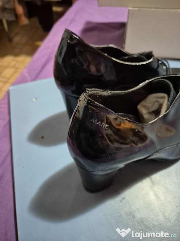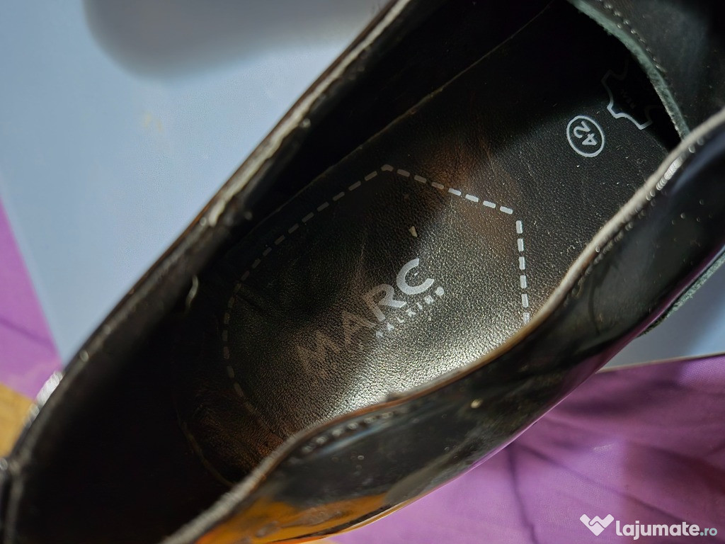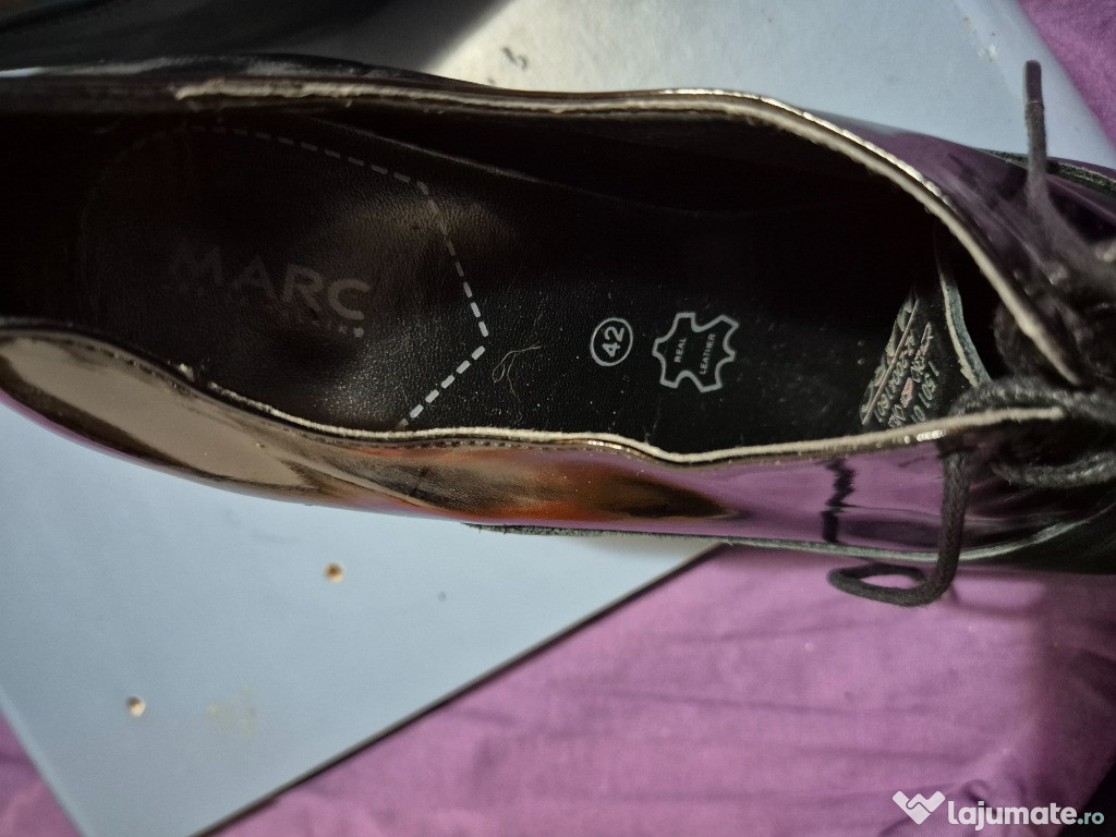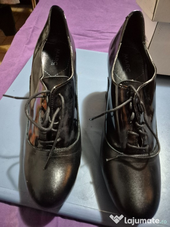 Pantofi pentru femei, marca MARC, fabricați în Portugalia din piele naturală de culoare neagră. Mărimea 42, toc 8,5cm, sunt noi.Locuiesc in loc. 1 Decembrie, jud. Ilfov, la cca 9 km de intrarea prin sos. Giurgiului in Bucuresti. Se ajunge foarte usor, in cca 15 minute cu masinile STB 465 sau 418 luate de la gura metroului Eroii Revolutiei.