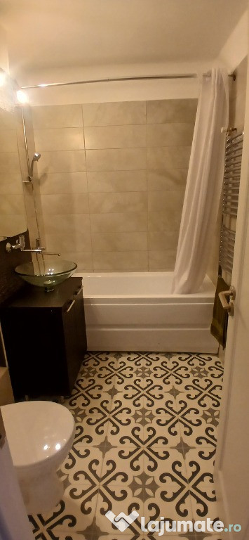 Baie complet renovată cu cadă și duș, suport încălzit pentru prosoape