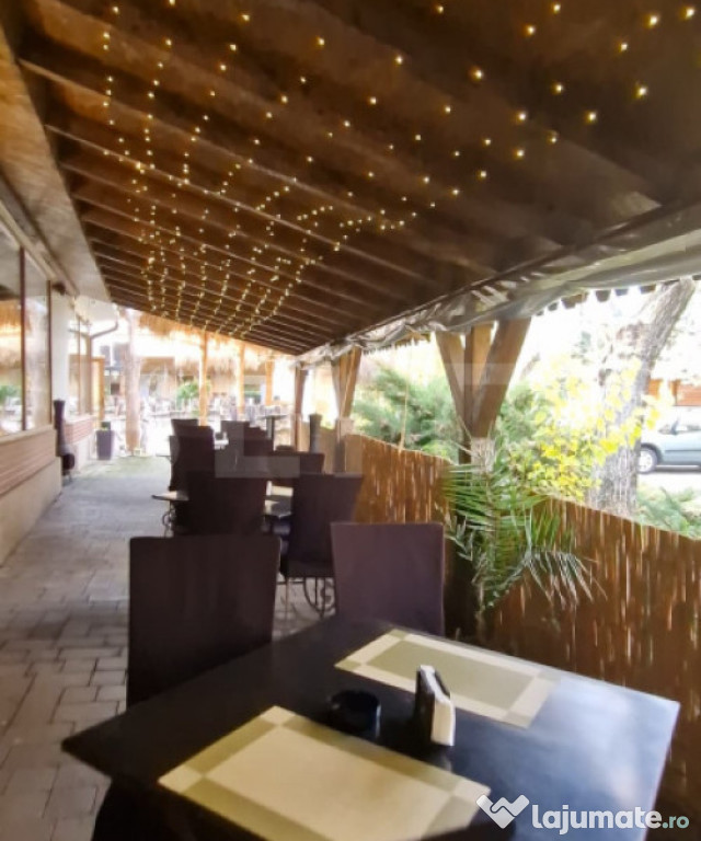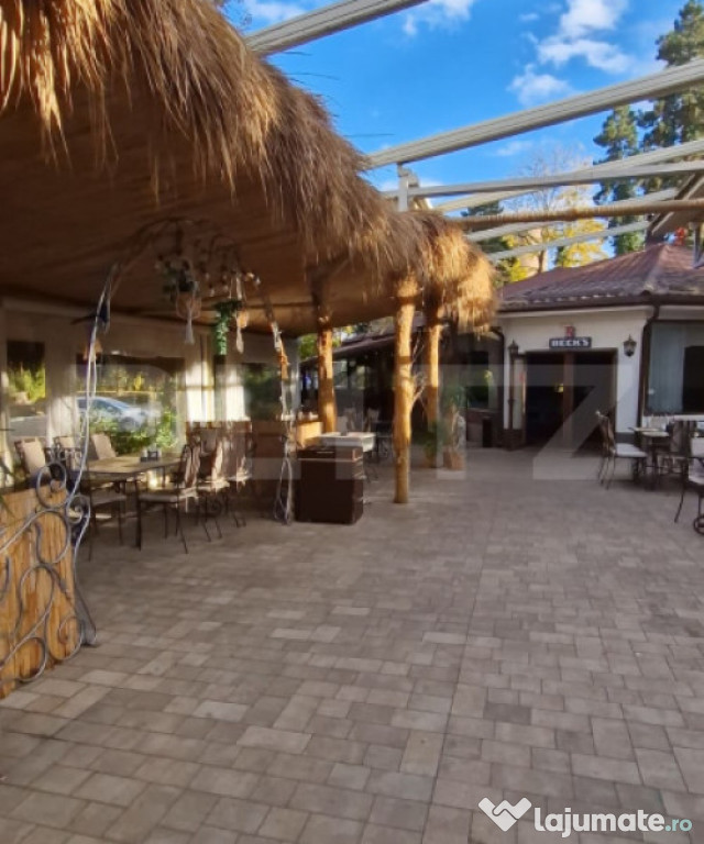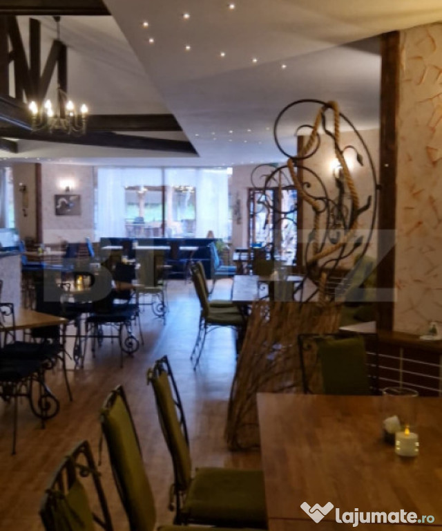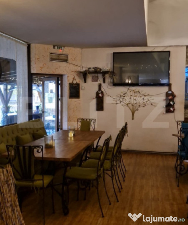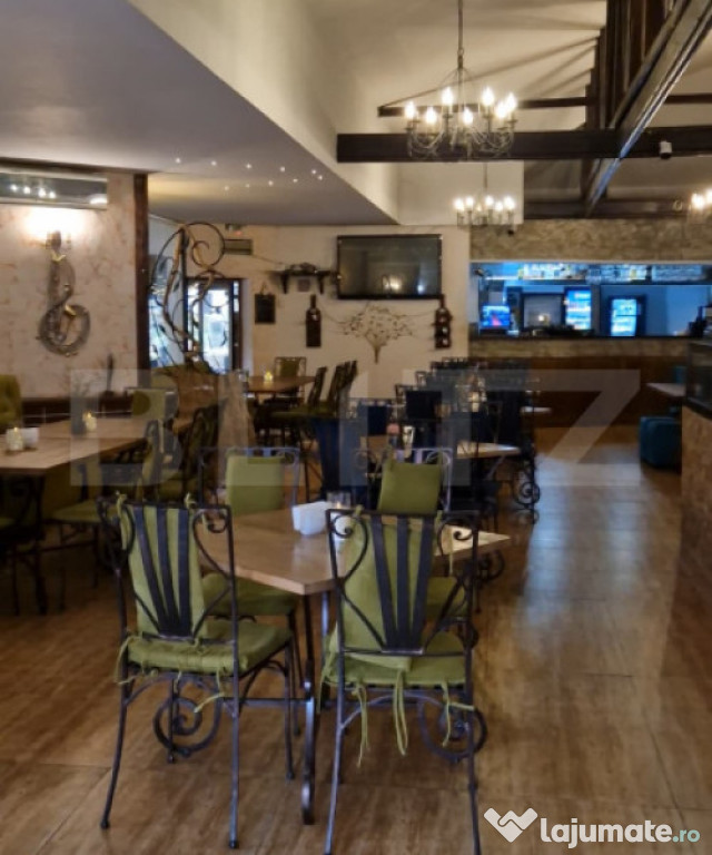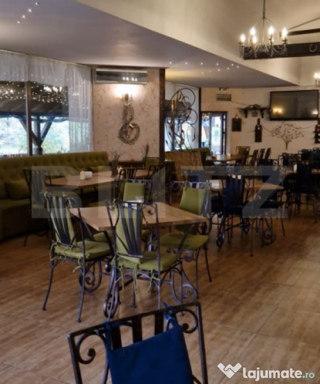 Imobilul este amplasat pe un teren de 688 mp și este compus dintr-un restaurant complet funcțional, bar, terasă acoperită, bucătărie complet utilată, precum și un apartament cu două camere, ideal pentru locuire sau spațiu administrativ.