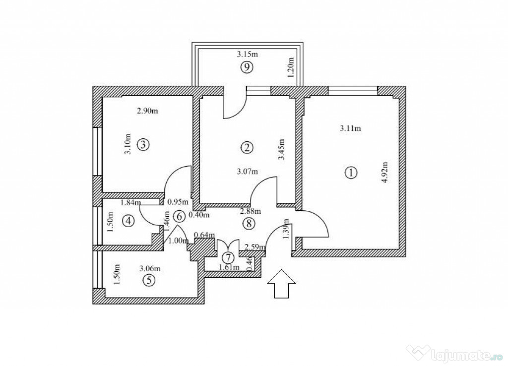 3C005Va prezentam un apartament cu 3 camere, spatios si bine compartimentat, bucatarie inchisa, balcon spatios, baie cu geam.