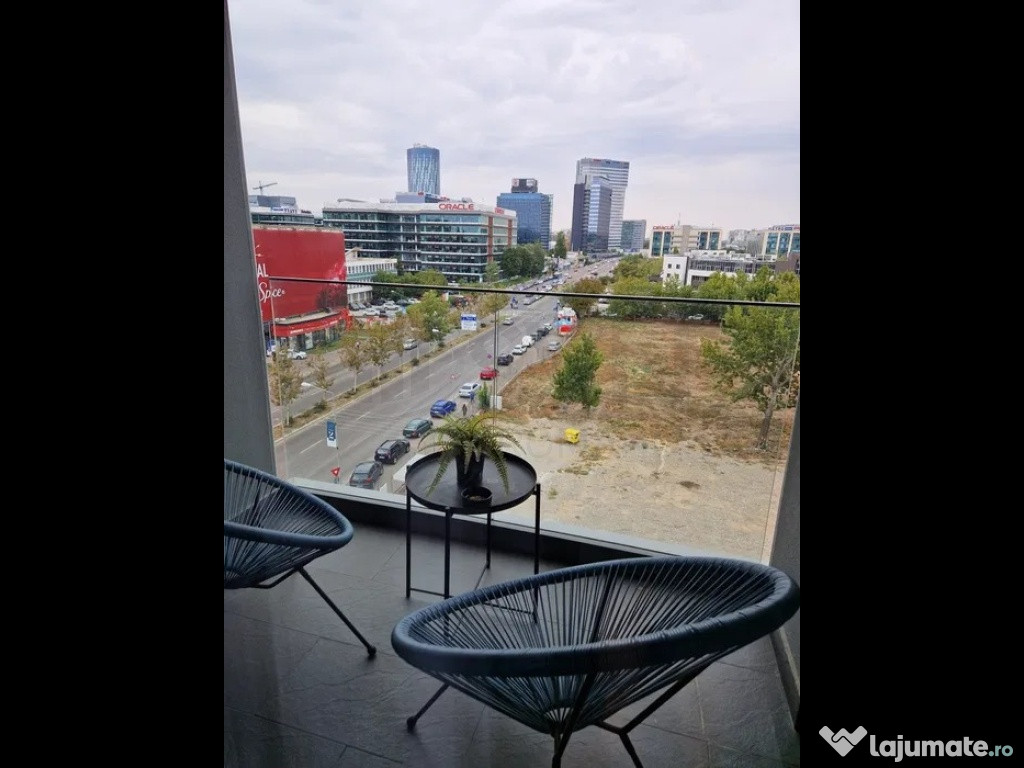 REA1025961 SVN Romania va propune spre inchiriere un apartament modern cu 2 camere, situat in complexul rezidential Cloud9 Residence – Aviatiei, una dintre cele mai apreciate zone din Nordul Bucurestiului.Proprietatea are o suprafata utila de 57 mp, este decomandata si se afla la etajul 5, oferind o priveliste superba catre Vest si Sud, spre Promenada Mall.