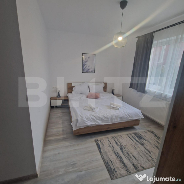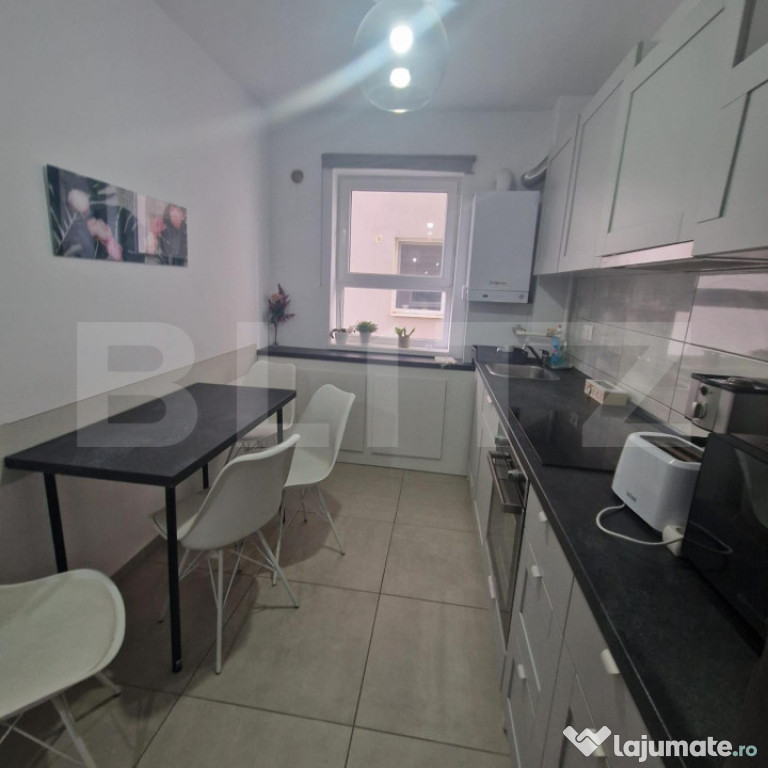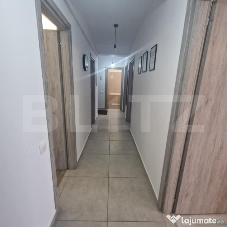 Blitz va prezinta un apartament cu 3 camere, decomandat, situat într-un bloc modern și luxos, construit în urmă cu doar 4 ani. Mobilat elegant și complet, acest apartament oferă un mediu confortabil și contemporan pentru întreaga familie. Cu 2 băi moderne și finisaje de calitate, precum gresia, faianța și geamurile termopan, acesta reprezintă o alegere excelentă pentru cei care apreciază confortul și rafinamentul.Cele 3 camere sunt spațioase și luminoase, oferind suficient spațiu pentru a vă bucura de fiecare colțișor al locuinței. Amplasat în apropierea Mall-ului Coresi, acest apartament beneficiază de acces facil către o varietate de magazine, școli, piețe, grădinițe, săli de sport și alte facilități, facilitându-vă viața de zi cu zi.