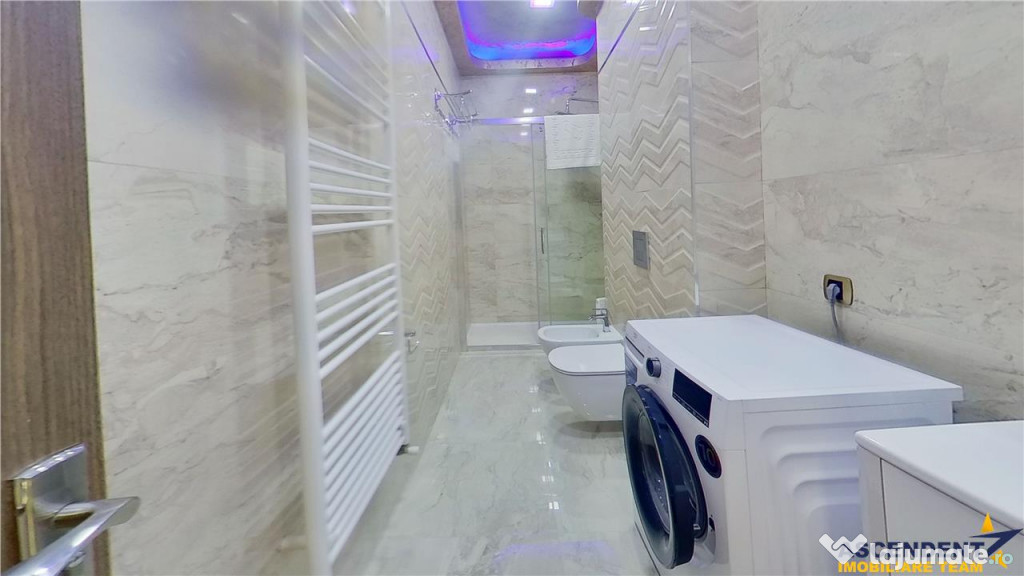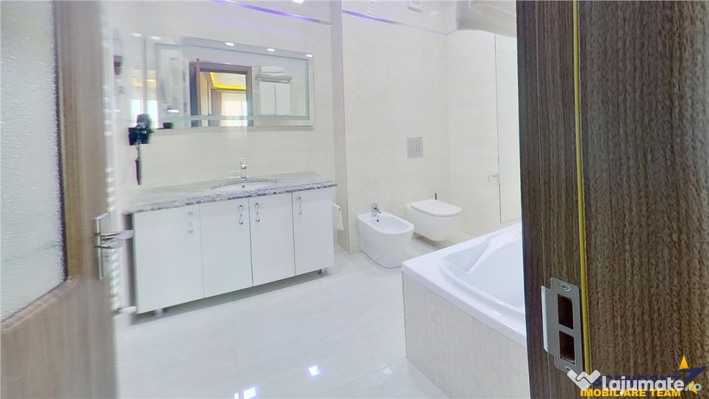 - 2 bai:Complet utilate, avand cabina de dus si cada, masina de spalat, bideu, uscator de par si oglinzi cu LED si lupa.