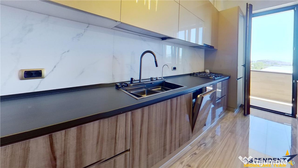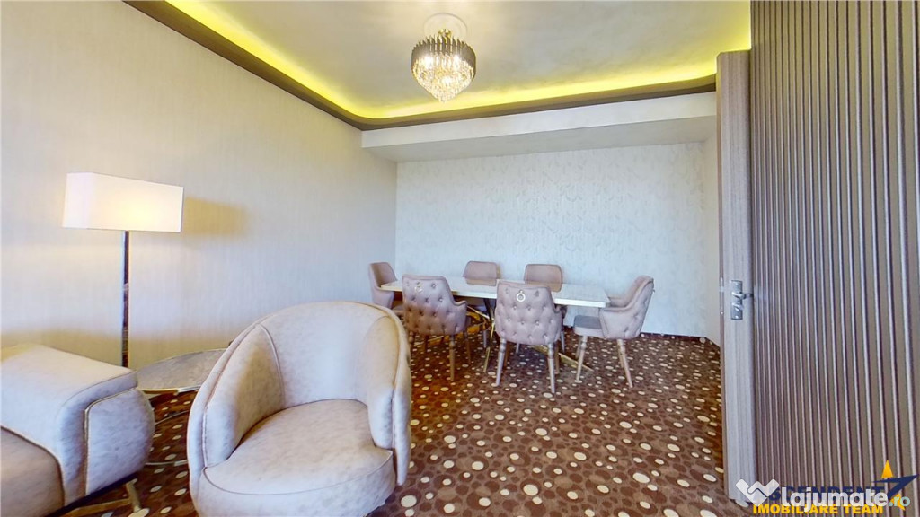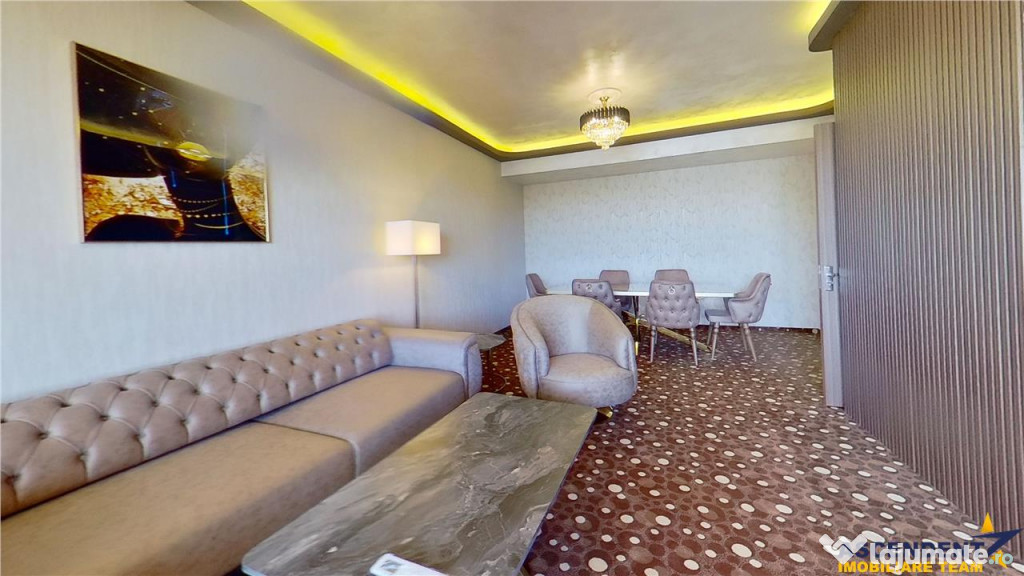 - Bucatarie: Mobilata si echipata cu aparatura de ultima generatie (frigider, plita pe gaz, hota, cuptor cu microunde, cuptor electric).