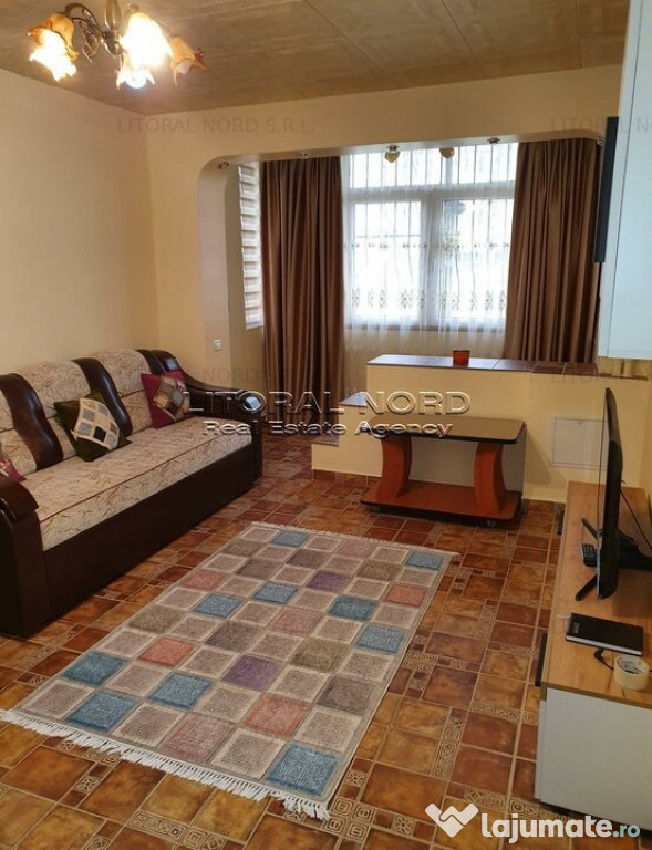 Tomis I- Spitalul Judetean, apartament 2 camere confort 1, semidecomandat, cu suprafata de 48mp cu balcon, situat intr-o zona linistita, la parter, intr-un bloc de 4 niveluri.Apartamentul a fost renovat recent, este mobilat, utilat, modern, exact cum se vede in fotografii si prezinta imbunatatiri de actualitate, gresie, faianta, tamparie PVC, izolat pe exterior, gaze la aragaz, incalzirea este centralizata, costuri mici.