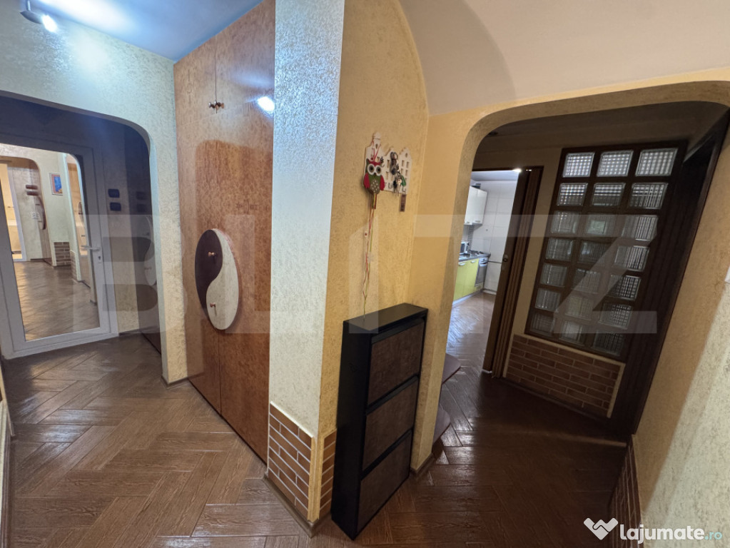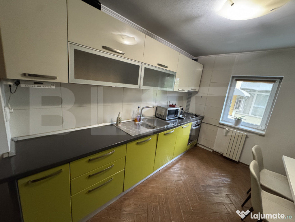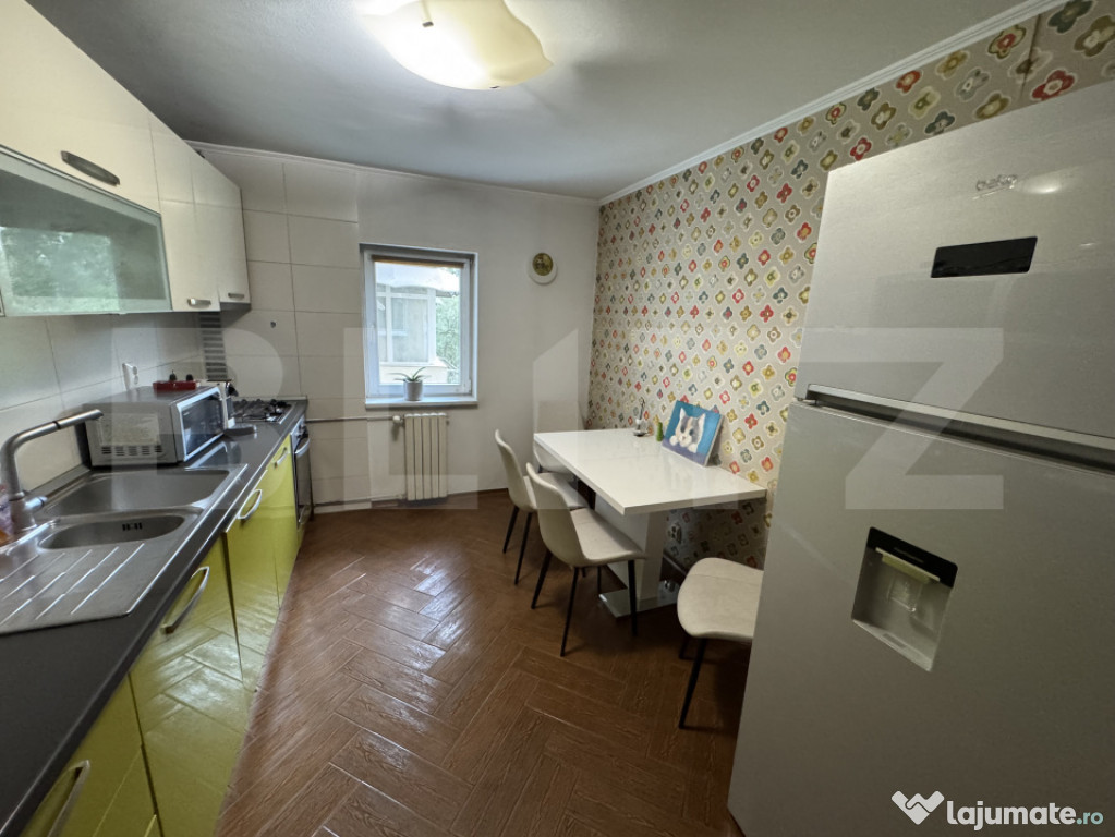 Blitz va propune spre închiriere un apartament de 4 camere, 82 mp utili, amplasat excelent pe Strada Maramureș din cartierul Rovine, aproape de Liceul Tudor Arghezi, cofetăria Damarin, Lidl, Penny, Profi non-stop și stații de autobuz sau taxi. Imobilul se afla la etajul 1 al unui bloc cu 4 etaje.Locuința este complet utilată: cuptor electric, plită pe gaz, cuptor cu microunde, hotă, mașină de spălat vase, iar în living regăsești un TV smart și un colțar extensibil. Apartamentul se remarcă prin compartimentarea eficientă, spațiul generos și accesibilitatea imediată către toate facilitățile zonei, fiind ideal pentru o familie sau pentru cei care caută confort și funcționalitate într-o zonă liniștită și bine conectată.