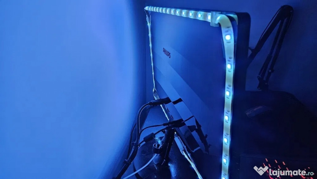 Pe spate are extra o banda led RGB, pentru lumina ambientala, ce poate fi controlata cu orice telefon prin aplicatia SmartLife!