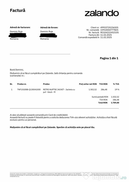 Vând jacheta originală The North Face Retro Nuptse 700, cumpărată personal de pe Zalando (vezi factura în poze).M am ingrasat si nu imi mai e bun, nu se mai incheie, nu l am purtat aproape deloc.