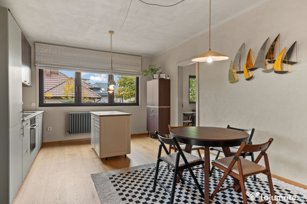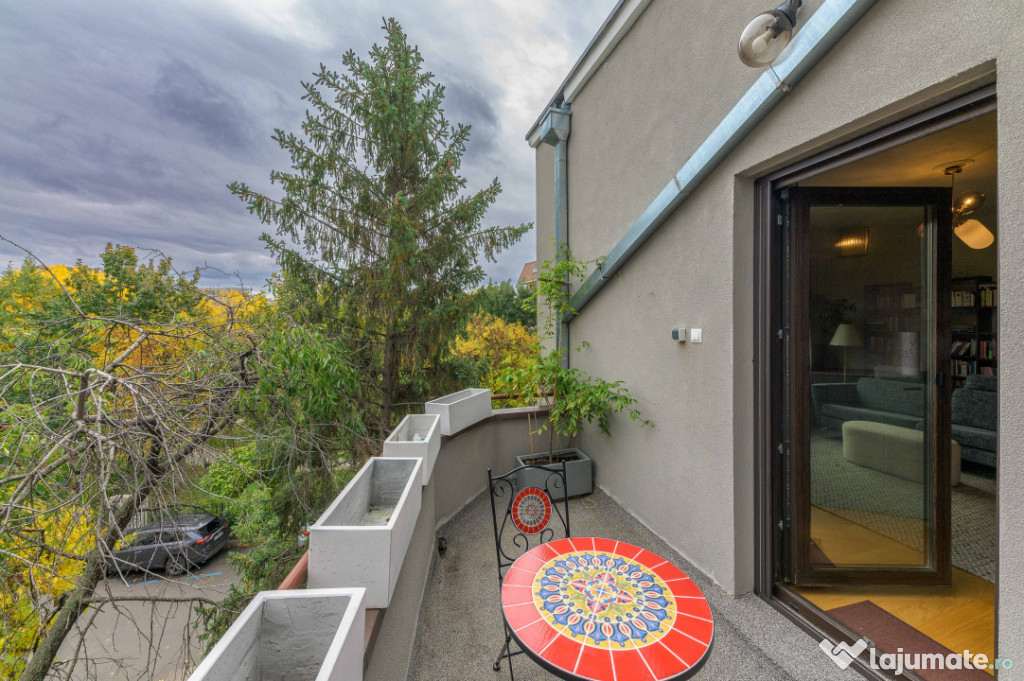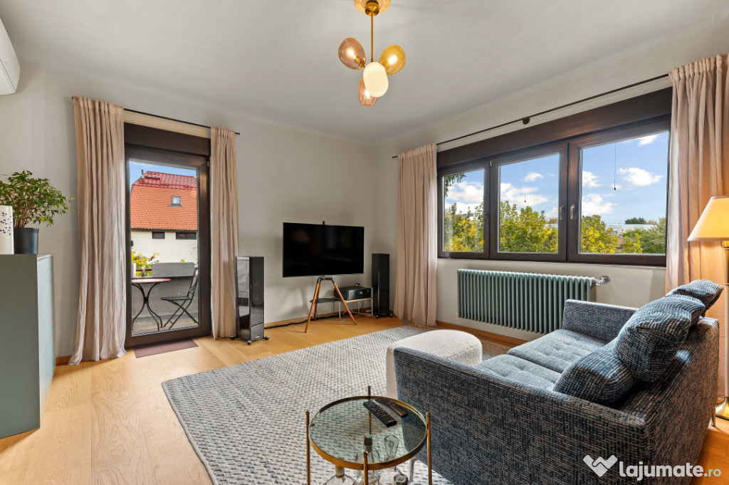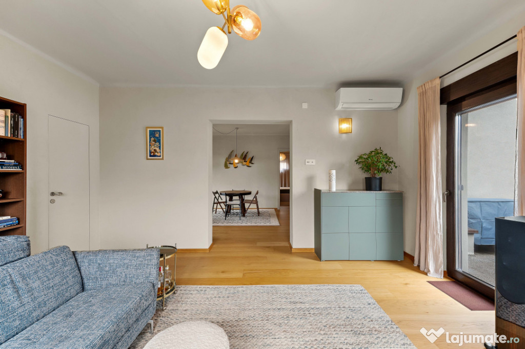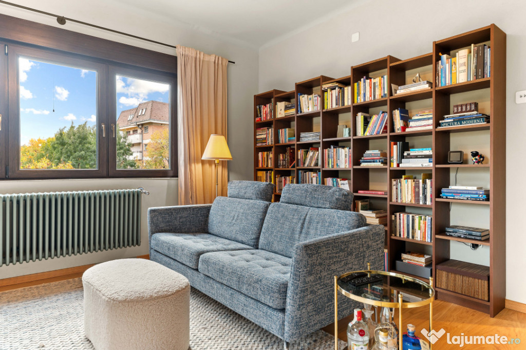 În inima cartierului Dorobanți, între eleganța clasică cu blocuri comuniste din Beller și rafinamentul discret al zonei de vile de pe stradutele cu nume de aviatori, unde rar apar proprietati la vanzare, se află acest frumos apartament cu 4 camere, amplasat la intersectia dintre Av. Marasoiu si Av. Iuliu Tetrat, într-o vilă Art Deco, recent renovată, ce cuprinde cu privirea micutul părculeț George Călinescu.Încă de la prima vedere, reiese îmbinarea perfectă dintre farmecul arhitecturii originale și confortul contemporan. Fațada recondiționată, culorile, liniile geometrice elegante și elementele decorative fine redau atmosfera sofisticată a epocii, în timp ce interiorul oferă o experiență de locuire luminoasă, echilibrată și exclusivistă.