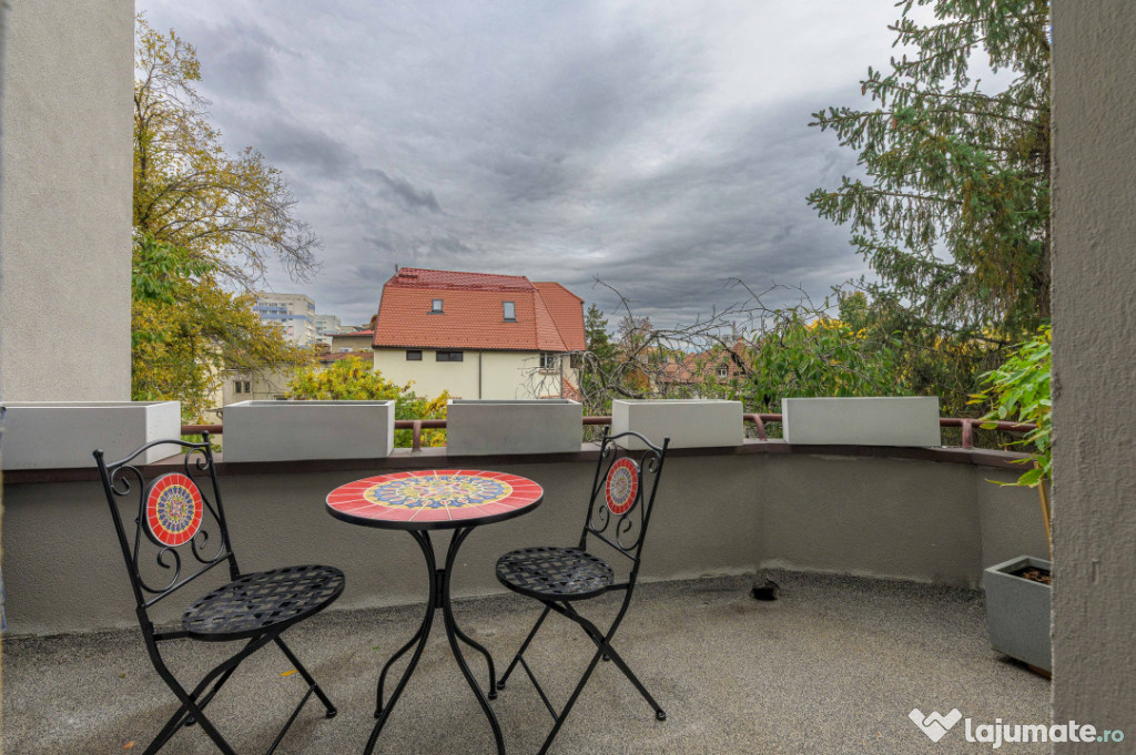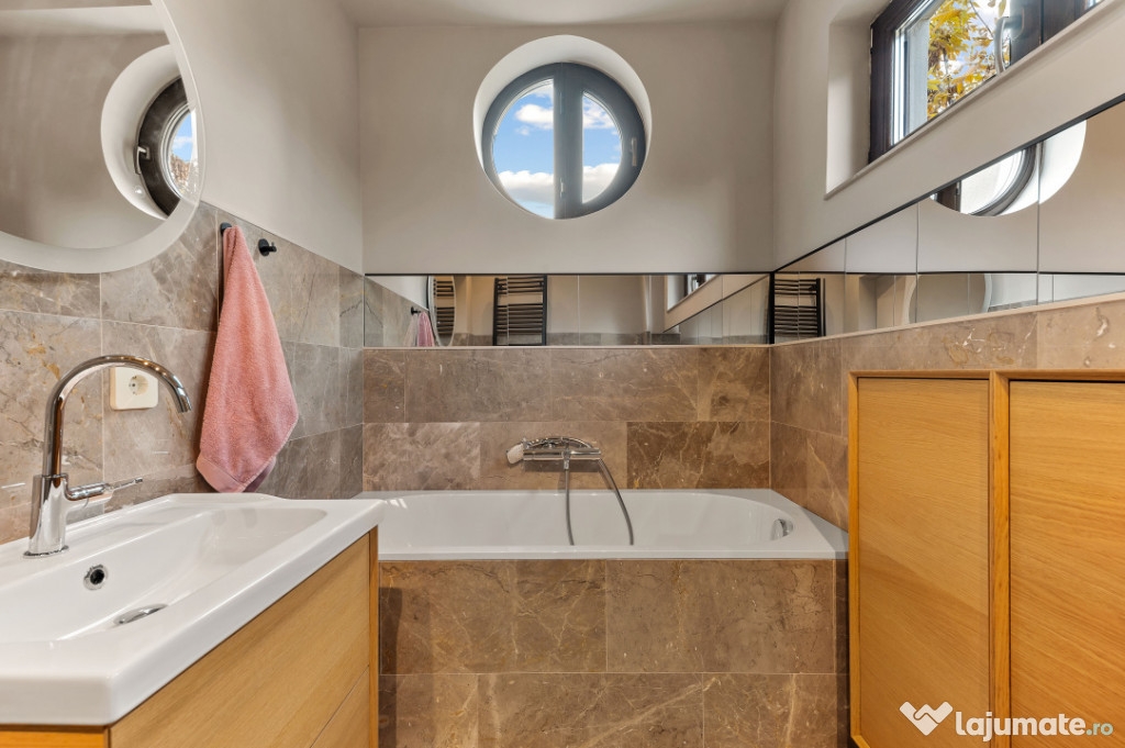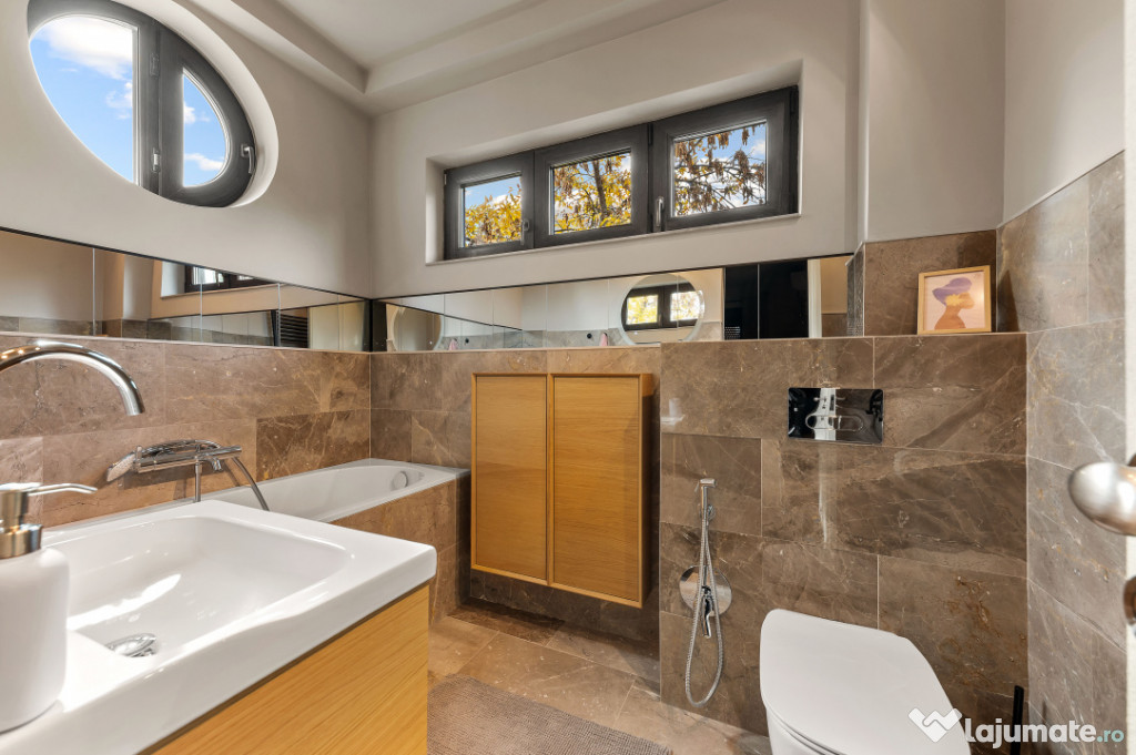 Apartamentul se bucură de o vedere superbă către Parcul George Călinescu, oferind un cadru de liniște și rafinament, rar întâlnit în centrul orașului. Spațiile generoase, finisajele premium, materialele naturale și cromatica elegantă definesc un stil atemporal, potrivit celor care apreciază armonia și bunul gust. Eleganta cu care a fost desenat acest apartament se vede, se simte, de la o simplă atingere atingere, nu-ti trebuie experienta sa realizezi ca nu oricine poate amenaja astfel o locuința. Detaliile chiar fac diferenta in acest apartament luminos si de aici pana la a numi acest loc "acasă" este doar un pas.