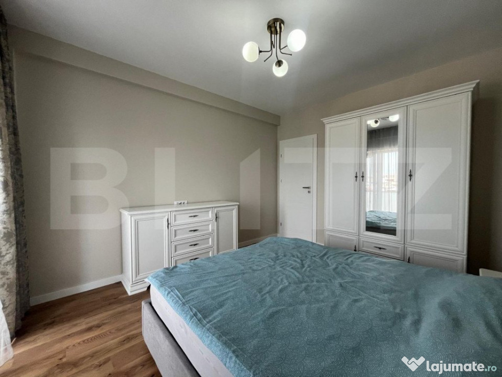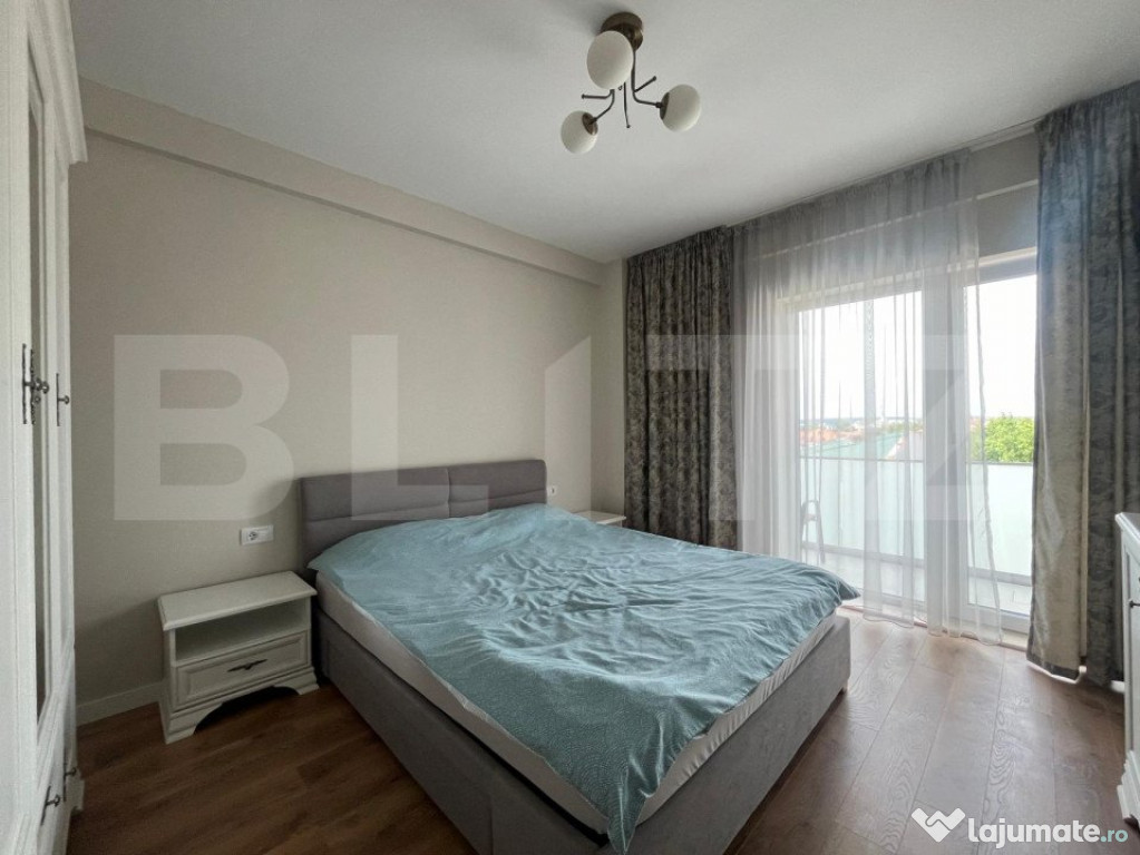 Blitz îți oferă un apartament de 2 camere, situat în zona restaurantului „12”, zonă foarte accesibilă. Apartamentul este poziționat la etajul 3 și dispune de o suprafață utilă de 63 mp. Este compus din: living, 1 dormitor cu pat matrimonial, dulapuri încăpătoare și comodă de depozitare, bucătărie, baie, hol și două balcoane. În prețul de închiriere se oferă și un loc de parcare privat.Datorită poziționării apartamentului și izolării foarte bune a blocului, cheltuielile sunt foarte mici.