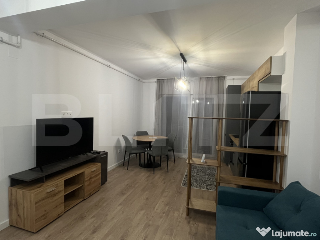 BLITZ oferă spre închiriere un apartament modern cu 2 camere, situat în complexul Best Residence, zona Porii, Florești. Amplasat într-o zonă liniștită și bine conectată, cu acces facil la magazine, stații de transport în comun și alte puncte de interes. Apartamentul se află la etajul 3 al unui bloc nou și modern, având o suprafață utilă de 47 mp. Compartimentarea este eficientă și cuprinde: living cu bucătărie open-space, dormitor, baie și hol. Dispune de un balcon generos de 10 mp, ideal pentru relaxare. Se închiriază complet mobilat și utilat, totul fiind nou, la prima închiriere. În preț este inclus și un loc de parcare exterior.✅ Prima închiriere! Disponibil imediat!