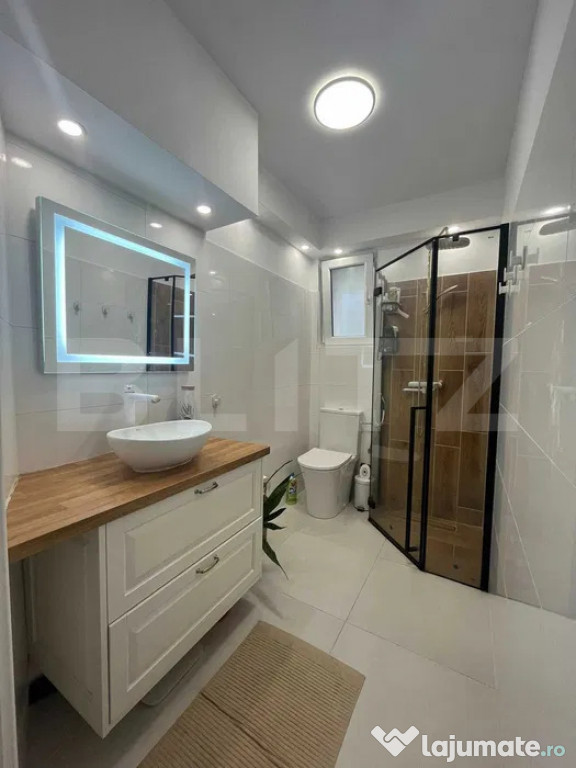 Apartamentul a fost complet renovat în perioada 2023–2024, cu lucrări de calitate superioară. Instalația electrică a fost refăcută integral, cu siguranțe separate pentru fiecare cameră și consumator mare, iar iluminarea ambientală modernă permite reglarea intensității luminii prin întrerupătoare tactile din sticlă. Instalația de apă este nouă, prevăzută cu supape de sens și încălzire prin pardoseală, asigurând confort termic constant.