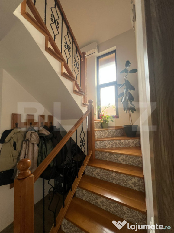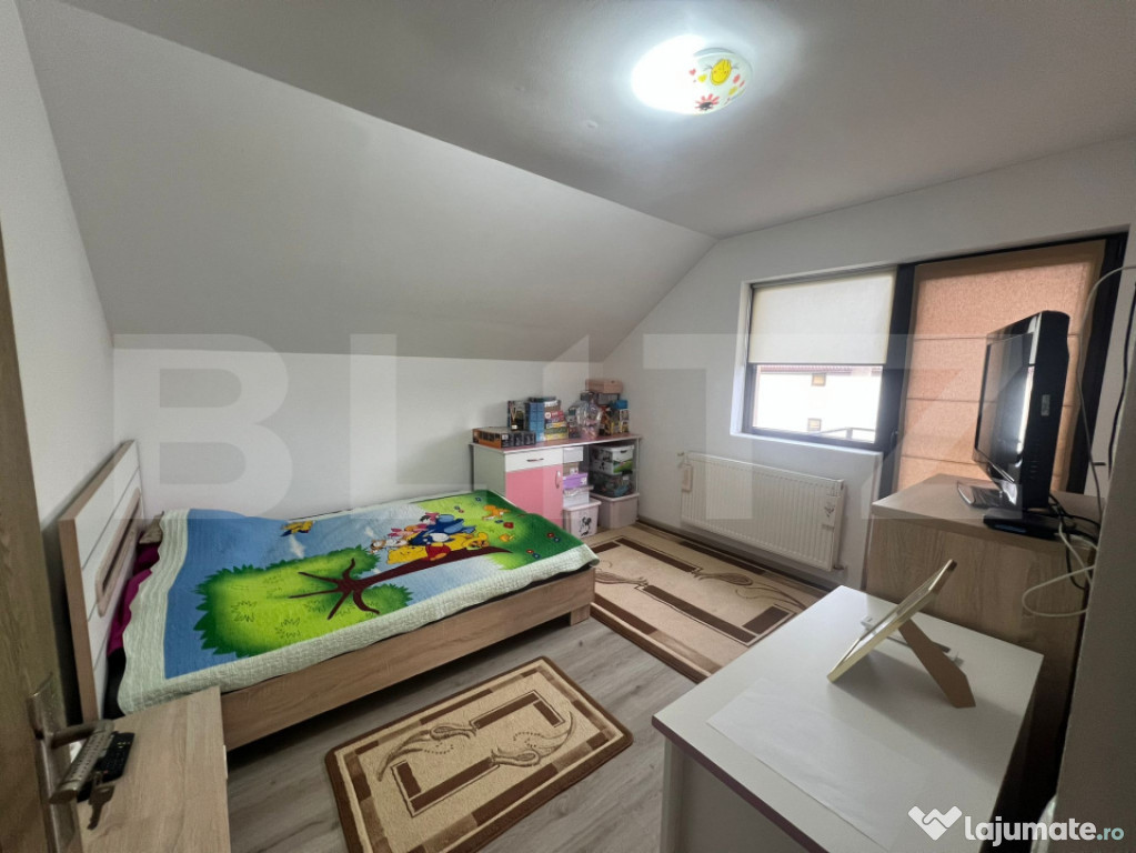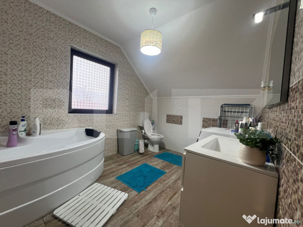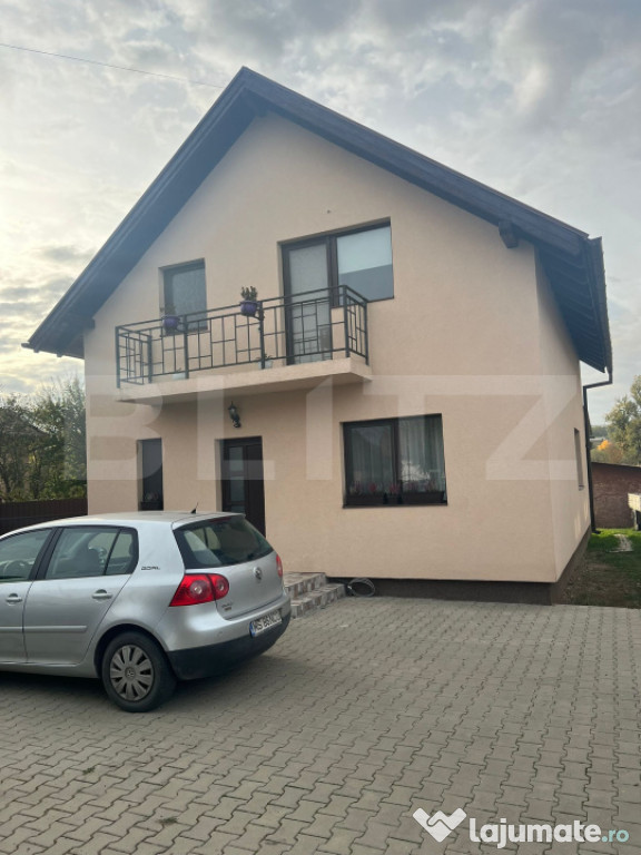 Se vinde complet mobilată și utilată, fiind locuibilă imediat. Încălzirea se realizează prin centrală termică pe gaz, cu calorifere.