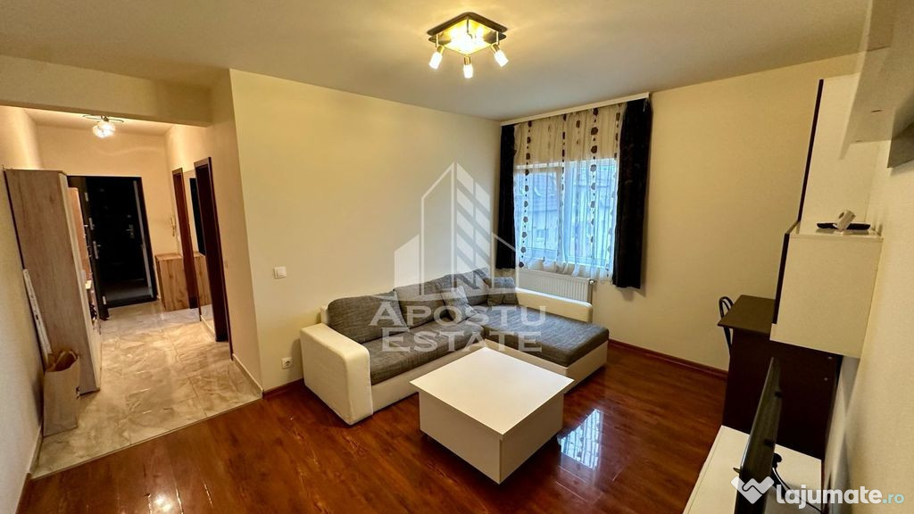 APOSTU ESTATE vă propune spre închiriere un apartament cu 2 camere, curat şi modern, zonă foarte bine conectată a oraşului Timişoara.Aceasta proprietate reprezinta o alegere excelentă pentru cei care caută un spaţiu elegant, luminos şi funcţional, pregătit pentru a fi locuit imediat, fără nicio investiţie suplimentara.
