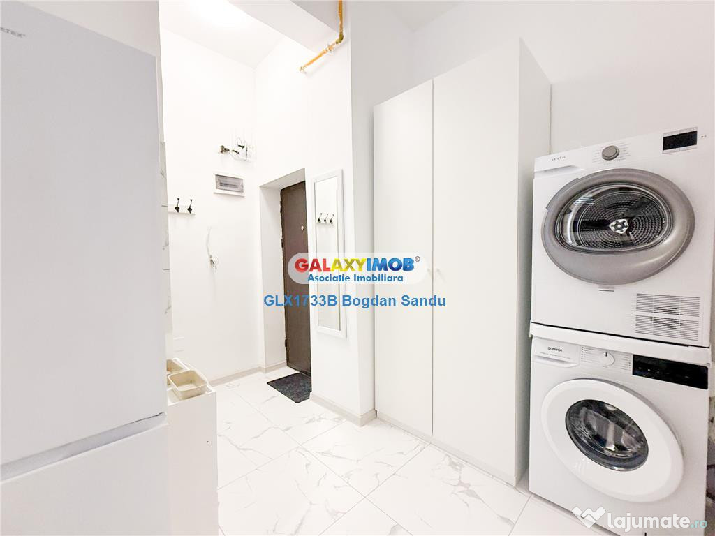 Locuinta detine centrala proprie, aer conditionat, plita pe gaz, cuptor electric, hota, frigider, masina de spalat, masina de uscat rufe si tv led.