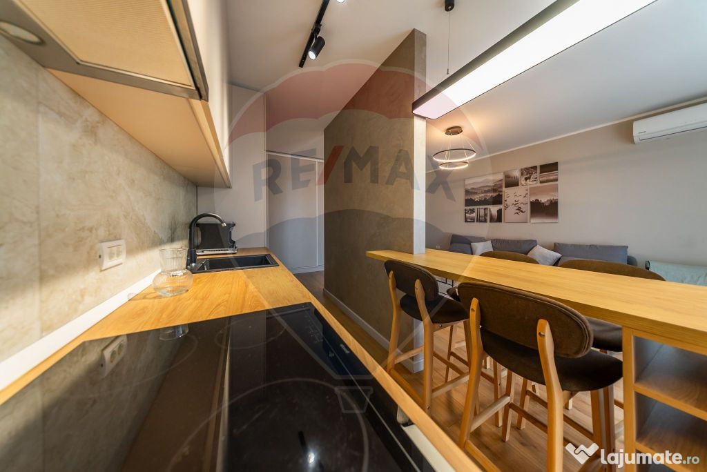 Amenajarea apartamentului a fost făcută cu ajutorul unui designer de interior, având finisaje de înaltă calitate și mobilier realizat pe comandă.