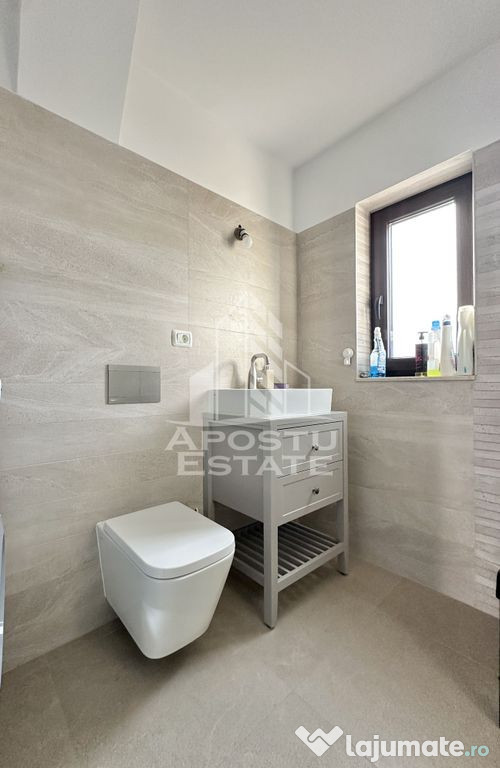 APOSTU ESTATE va propune spre vanzare un duplex situat in Giroc.Locatia imobilului se potriveste perfect celor ce isi doresc sa se detaseze de agitatia orasului. In apropiere sunt magazine si supermarket-uri precum Profi, Lidl, Mega Image, Penny, scoala si gradinita la o distanta de 5 minute, acces facil la mijloace de transport în comun, distanta pana in statie este de aproximativ 3 minute.