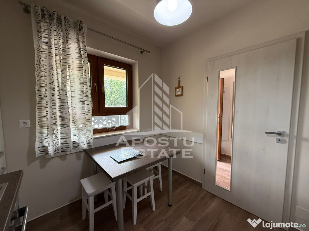 Bucătărie complet mobilată și utilată, cu loc de luat masa