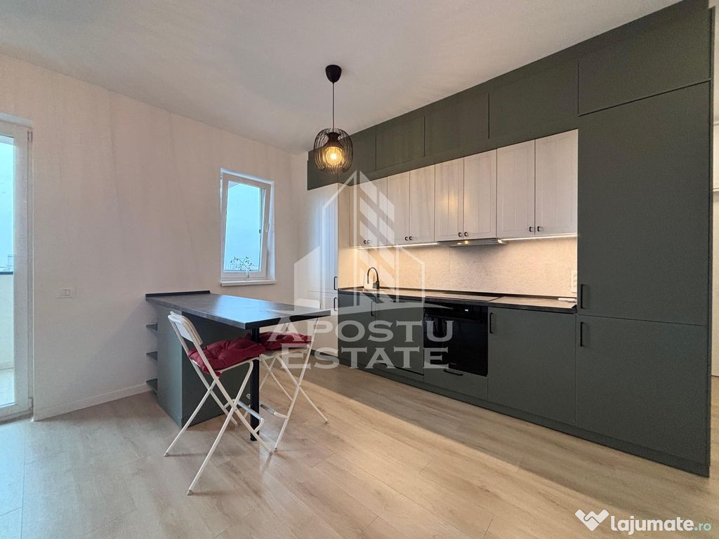 APOSTU ESTATE va propune spre inchiriere un apartament modern si complet utilat, cu 2 camere, situat in zona Torontalului, ideal pentru cupluri sau profesionisti care cauta confort si acces rapid catre punctele cheie ale orasului.• Etaj 7/11