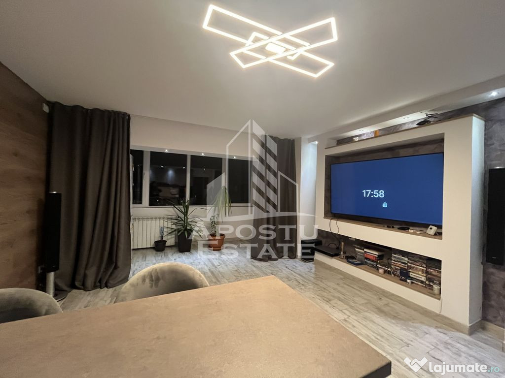 Proprietarul a renovat apartamentul integral ,inclusiv instalaţia sanitară şi electrică, confortul termic este asigurat de centrala proprie pe gaz.Apartamentul se vinde complet mobilat si utilat.
