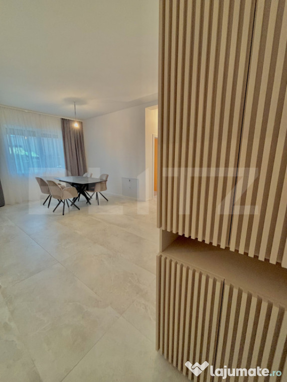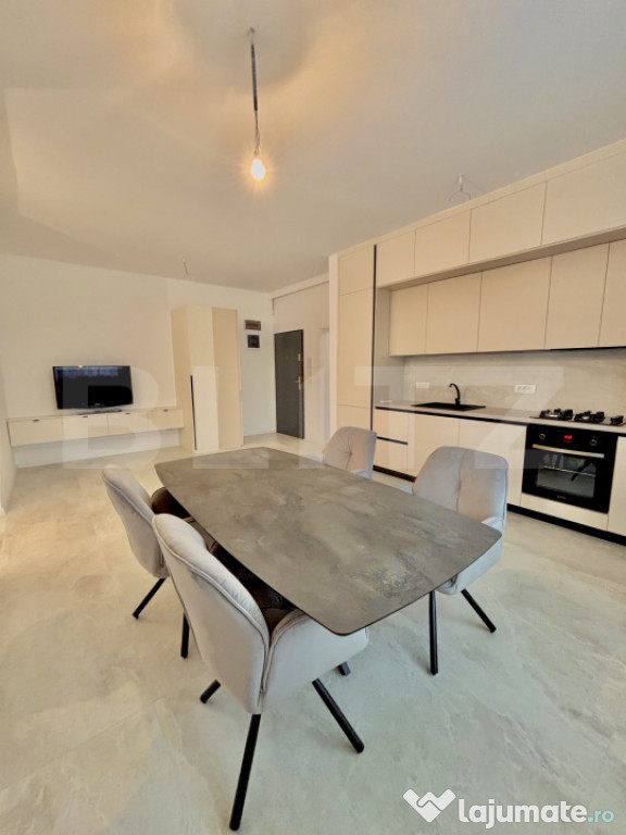 Blitz imobiliare te invita sa descoperi un apartament perfect pentru cei care caută un stil de viață modern și confortabil.Situat într-o construcție nouă si anvelopata termic, acest apartament cu 3 camere și 2 băi te întâmpină cu un spectru de culori calde și atentie la detalii. Este mobilat și utilat complet, electrocasnice premium și aer condiționat pentru confort pe tot parcursul anului. Beneficiaza de încălzirea în pardoseală, centrala proprie, dar și rulouri electrice care adaugă atât stil, cât și funcționalitate.