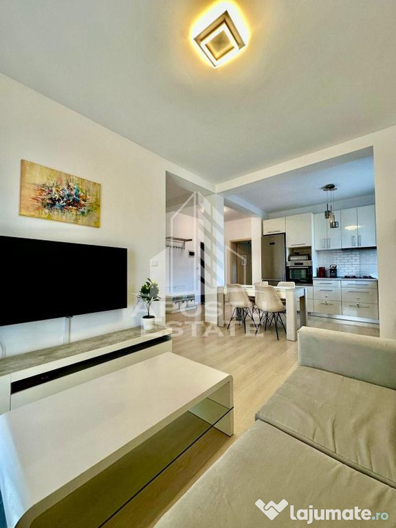 APOSTU ESTATE vă propune spre închiriere un apartament modern cu 2 camere și 1 loc de parcare situat într-o zonă liniștită și bine conectată din Dumbravita, ideal pentru cupluri sau persoane care doresc un spațiu confortabil.Suprafață utilă: 52 mp