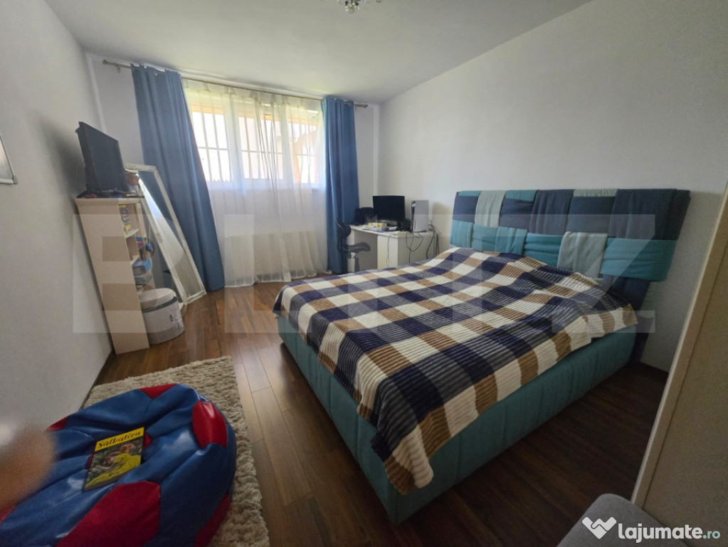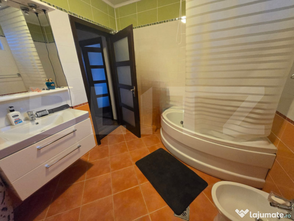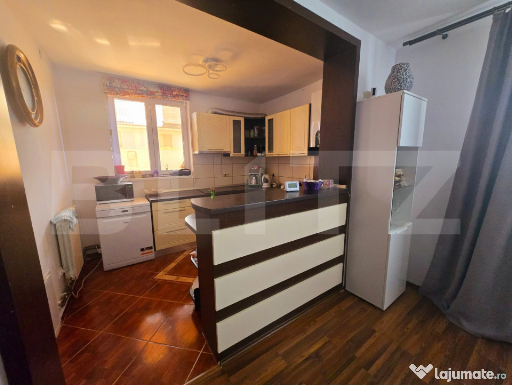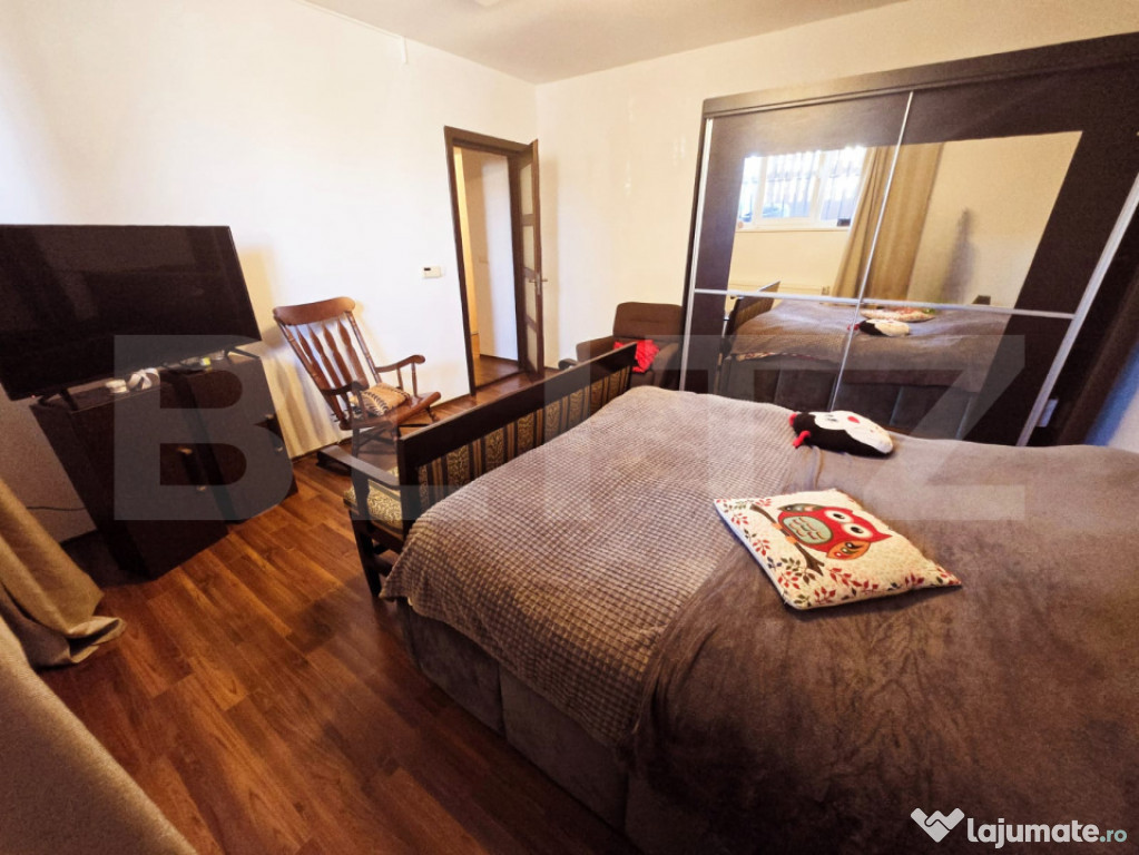 Blitz oferă spre vânzare un apartament spațios, complet mobilat, cu 3 camere, situat în zona centrală a orașului.Proprietatea are o suprafață generoasă de 102 mp utili, fiind compartimentată practic și modern, astfel încât să ofere confort și funcționalitate. În plus, dispune de un teren aferent de 100 mp, ideal pentru relaxare și activități în aer liber.