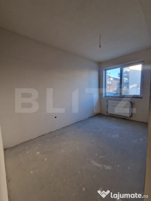 Blitz va propune spre vanzare un apartament de 3 camere aflat intr-un ansamblu rezidential din zona Terra . Apartamentul este situat la parterul inalt al unui imobil cu 3 etaje, avand o suprafata de 68 mp.Aceasta este compartimentata astfel: 2 dormitoare, 1 bucatarie open space cu living, 2 bai si o terasa. Apartamentul se preda la stadiul de semifinisat avand incluse: centrala termica, usa metalica la intrare, instalatii sanitare, electrice trase pe pozitie, tamplarie PVC.