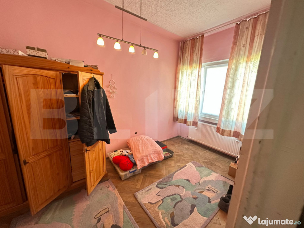 Blitz va prezinta un apartament de 3 camere semidecomandat, situat în zona 1 Decembrie – o poziție centrală, liniștită și aproape de toate punctele de interes. Locuința are o suprafață utilă de aproape 64 mp și se află la etajul 4/4 al unui bloc din cărămidă (an construcție 1969), cu acoperiș într-o apă.Compartimentarea este echilibrată: hol mare, bucătărie închisă generoasă, două dormitoare și un living la fel de spațios. Geamurile lungi, cât peretele, oferă multă lumină naturală, iar tavanele înalte accentuează senzația de spațiu.