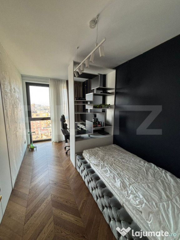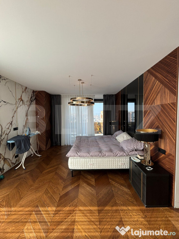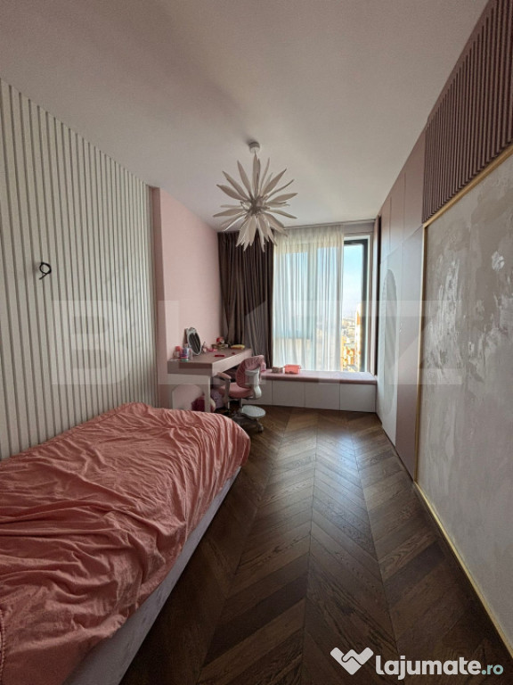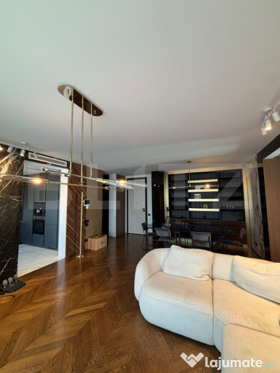Se vinde complet mobilat și utilat, cu materiale și finisaje de top, atent alese pentru a oferi eleganță, rafinament și confort. Datorită orientării și poziționării la etajul 7 din 8, apartamentul este foarte luminos, beneficiind de lumină naturală pe tot parcursul zilei.