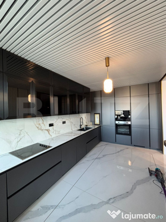 Blitz vă propune spre vânzare un apartament de lux cu 4 camere, situat în una dintre cele mai apreciate zone din Cluj-Napoca – Gheorgheni, lângă Iulius Mall. Zona oferă acces rapid la mijloace de transport, magazine, grădinițe, școli, bănci și restaurante, fiind ideală pentru un stil de viață urban și confortabil.Apartamentul are o suprafață utilă de 134,7 mp, excelent compartimentată: living generos, bucătărie, 3 băi, 3 dormitoare și 2 balcoane cu o suprafață totală de 24,5 mp, ce oferă o priveliște panoramică superbă asupra orașului.