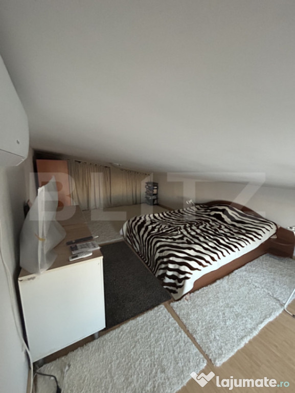 Vă propunem spre vânzare un apartament luminos și bine compartimentat, situat la mansardă, într-un imobil construit în anul 2009, amplasat într-o zonă liniștită, între case, la doar 5 minute de mers pe jos de stația de metrou 1 Mai, precum și de stațiile de autobuz și troleibuz.