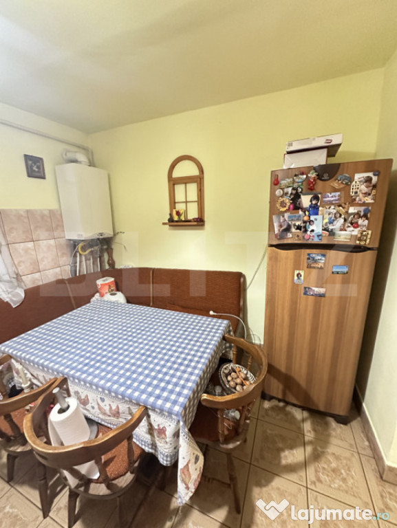 Dispune de centrală proprie cu condensare, calorifere, parchet masiv bine întreținut, și toate electrocasnicele esențiale: frigider, aragaz, mașină de spălat.